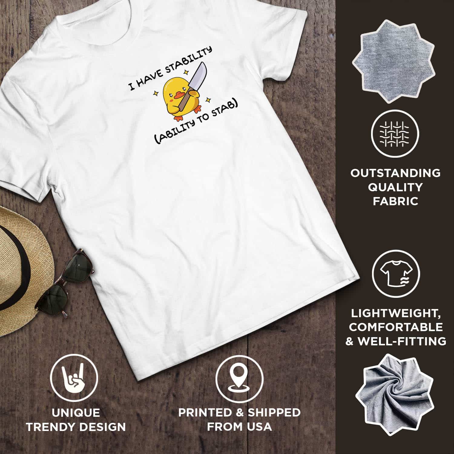 Are you spending too much time to find creative merchandise for you or suitable & special gifts for your mommy, your daddy, your son, your daughter, your children, your friends or someone you love? The struggle is over because we have various type of products such as I Have Stability Ability To Stab Shirt, I Have Stability Ability To Stab Left Chest TShirt, funny saying sarcastic Shirt, I Have Stability Shirt, I Have Stability Duck Shirt which will make perfect presents for your beloveds. In order to make your present stand out, we have created lots of unique and awesome customized photo gifts & personalized designs.