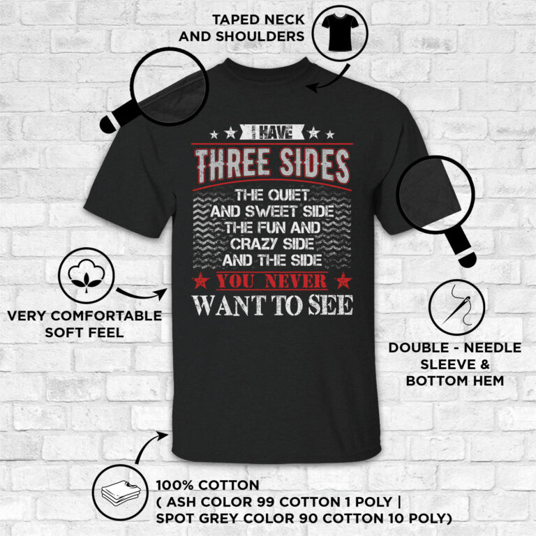 Are you spending too much time to find creative merchandise for you or suitable & special gifts for your mommy, your daddy, your son, your daughter, your children, your friends or someone you love? The struggle is over because we have various Three Sides Shirt, Funny Shirt, Quiet People Shirt, Crazy Shirt, I Have Three Sides T Shirt, Birthday Gifts, Back Shirt, Three Sides Back Shirt which will make perfect presents for your beloveds. In order to make your present stand out, we have created lots of unique and awesome customized photo gifts & personalized designs.
