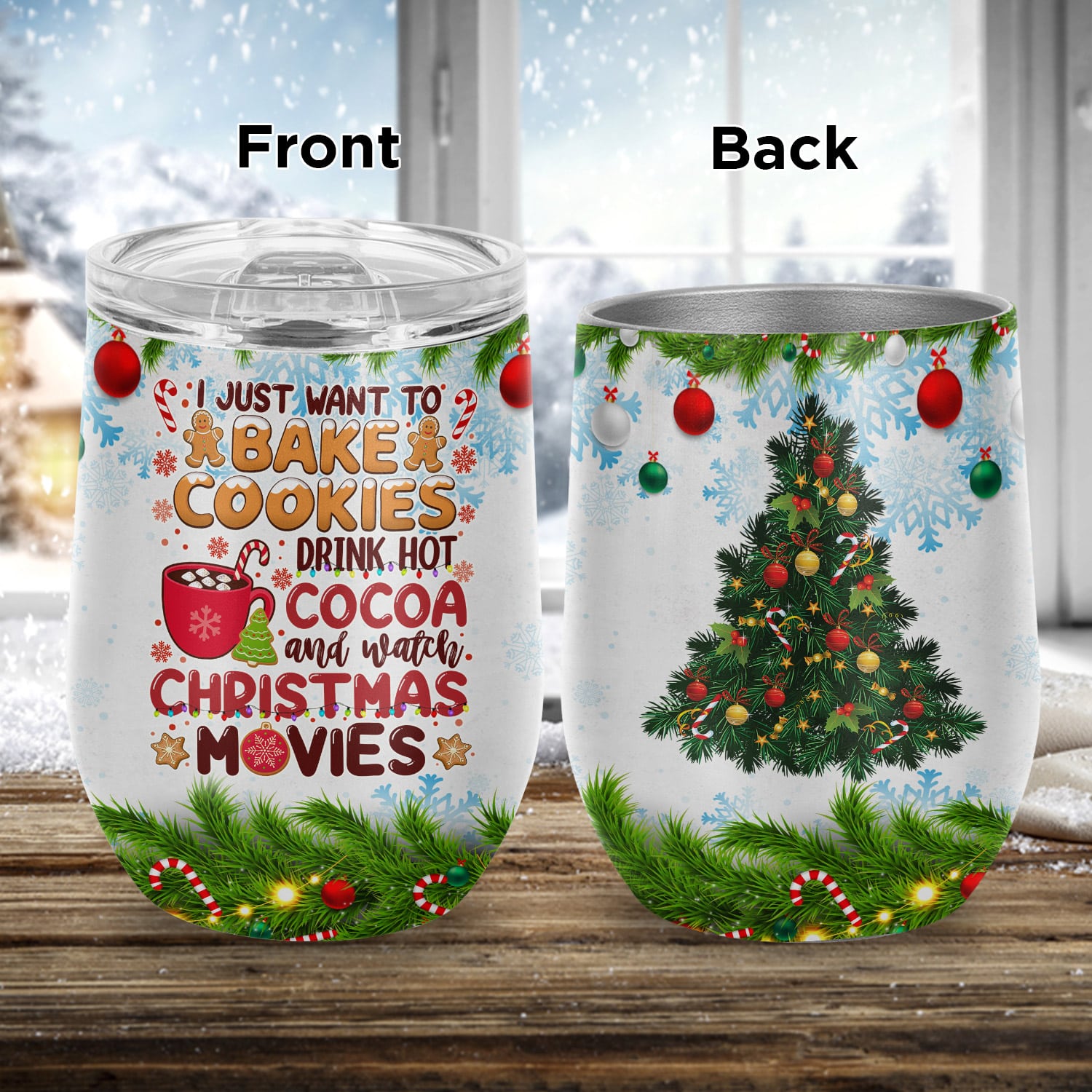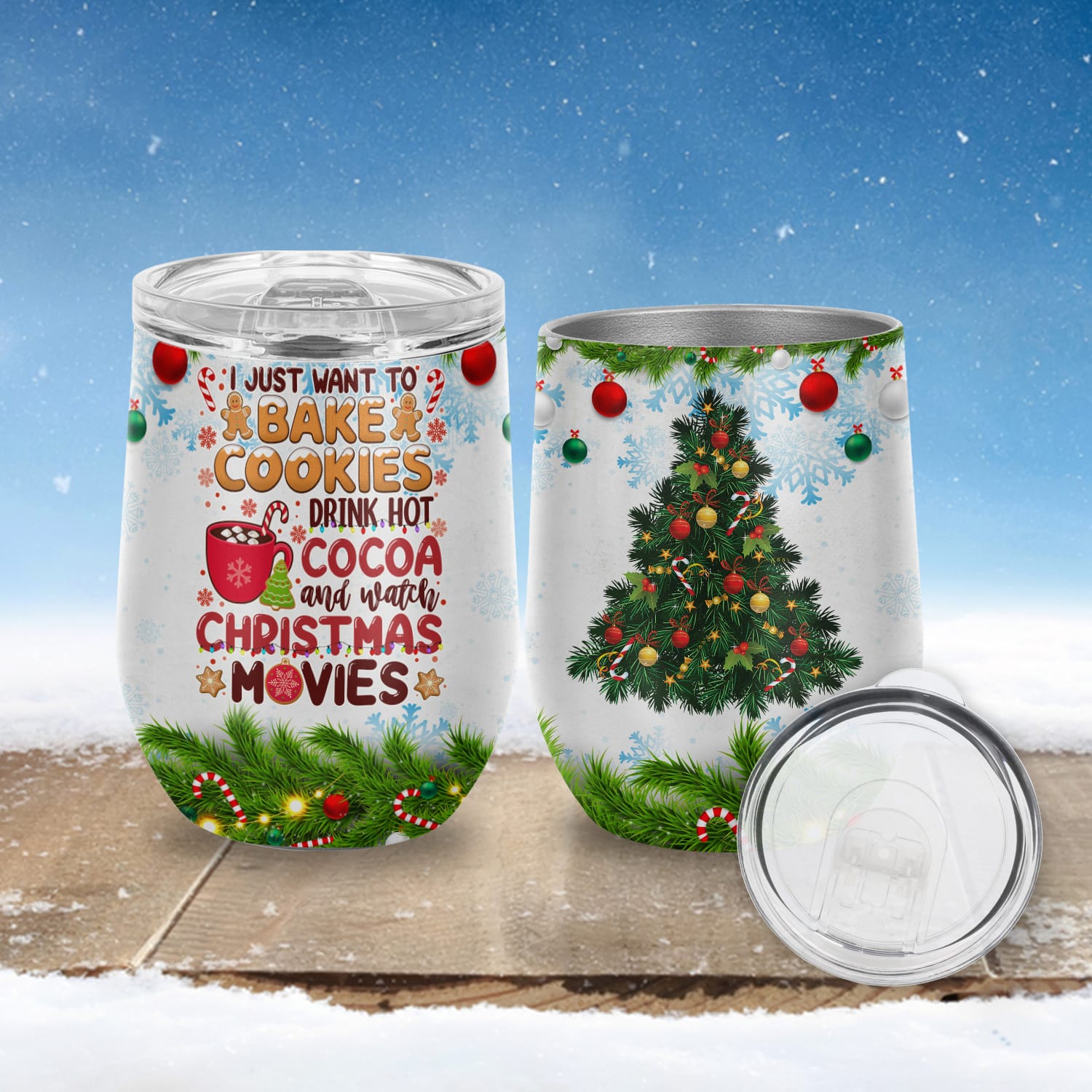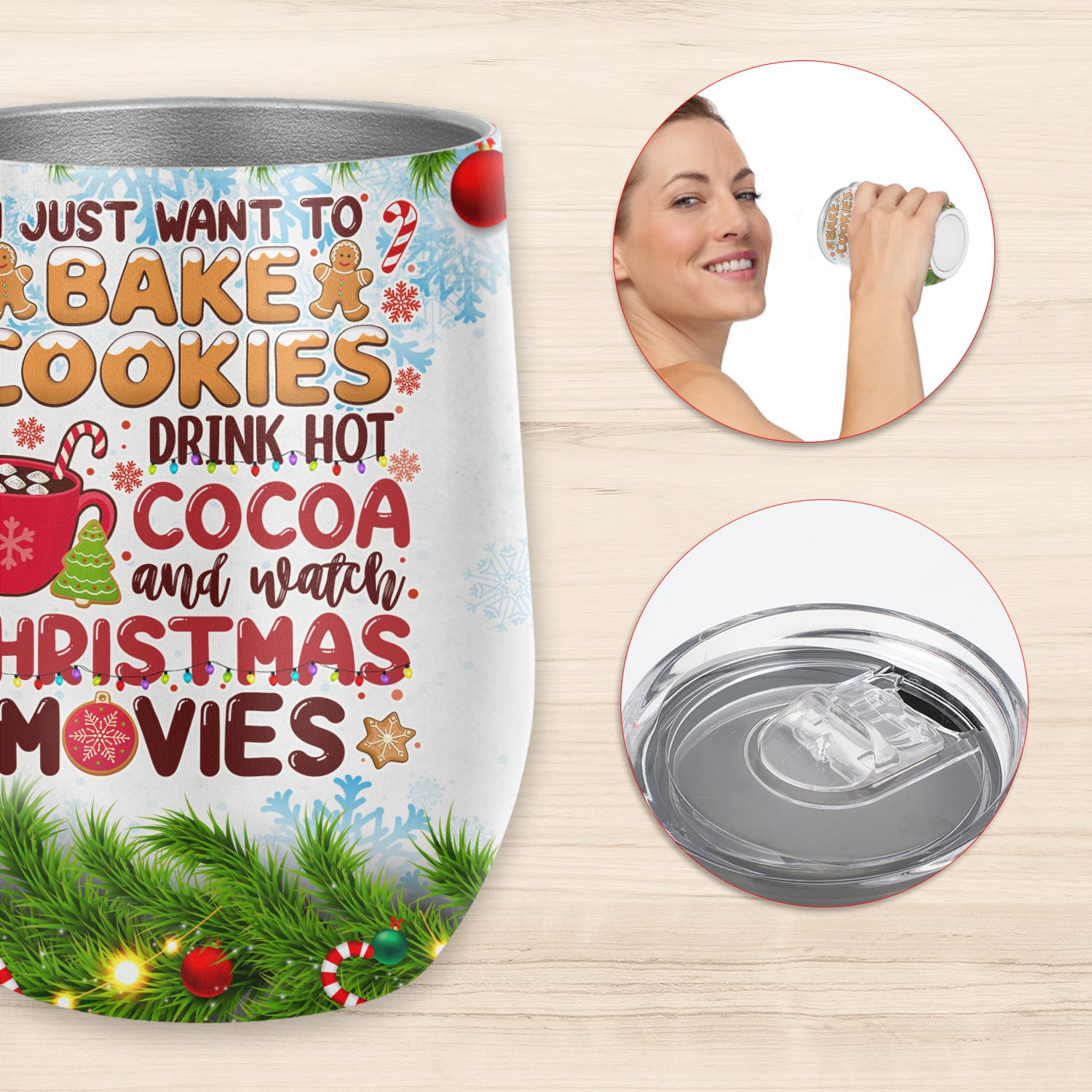 Let’s Shop I Just Want To Bake Cookies Drink Hot Cocoa and Watch Christmas Movies Insulated Wine Tumbler with Lid – Funny Christmas Movie Mugs!