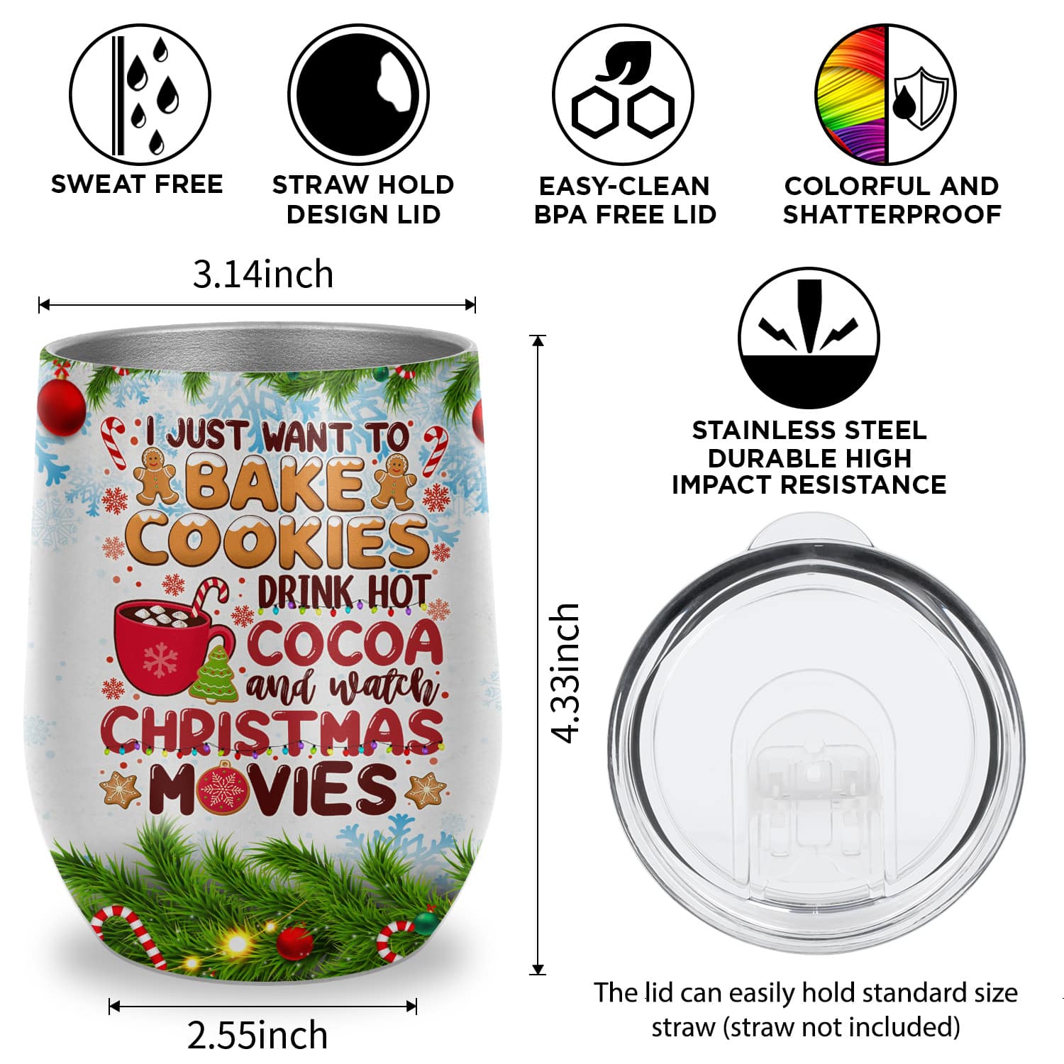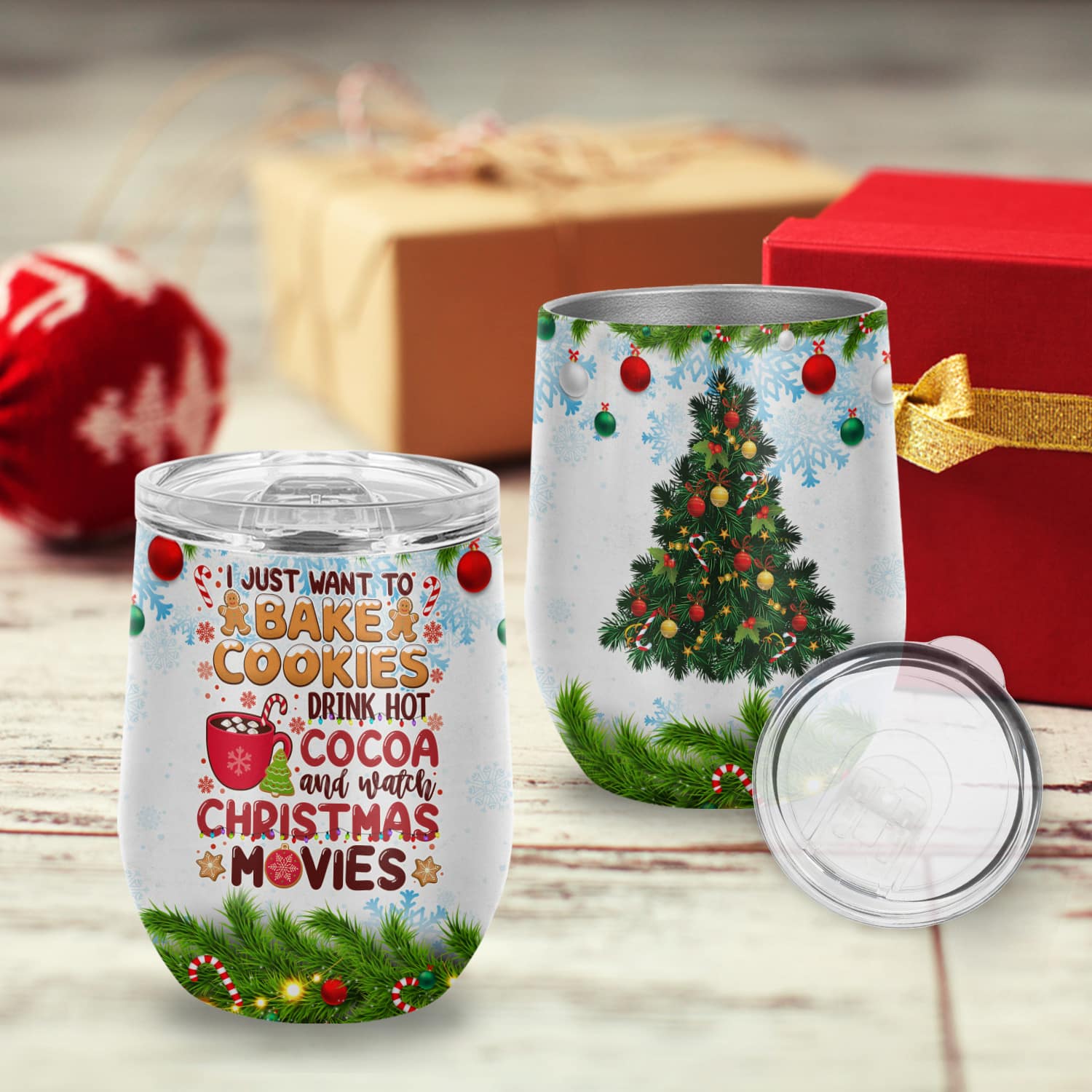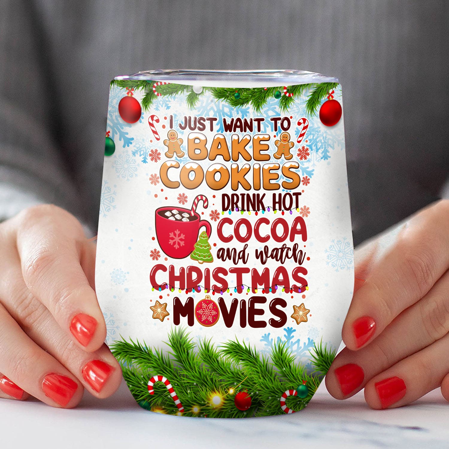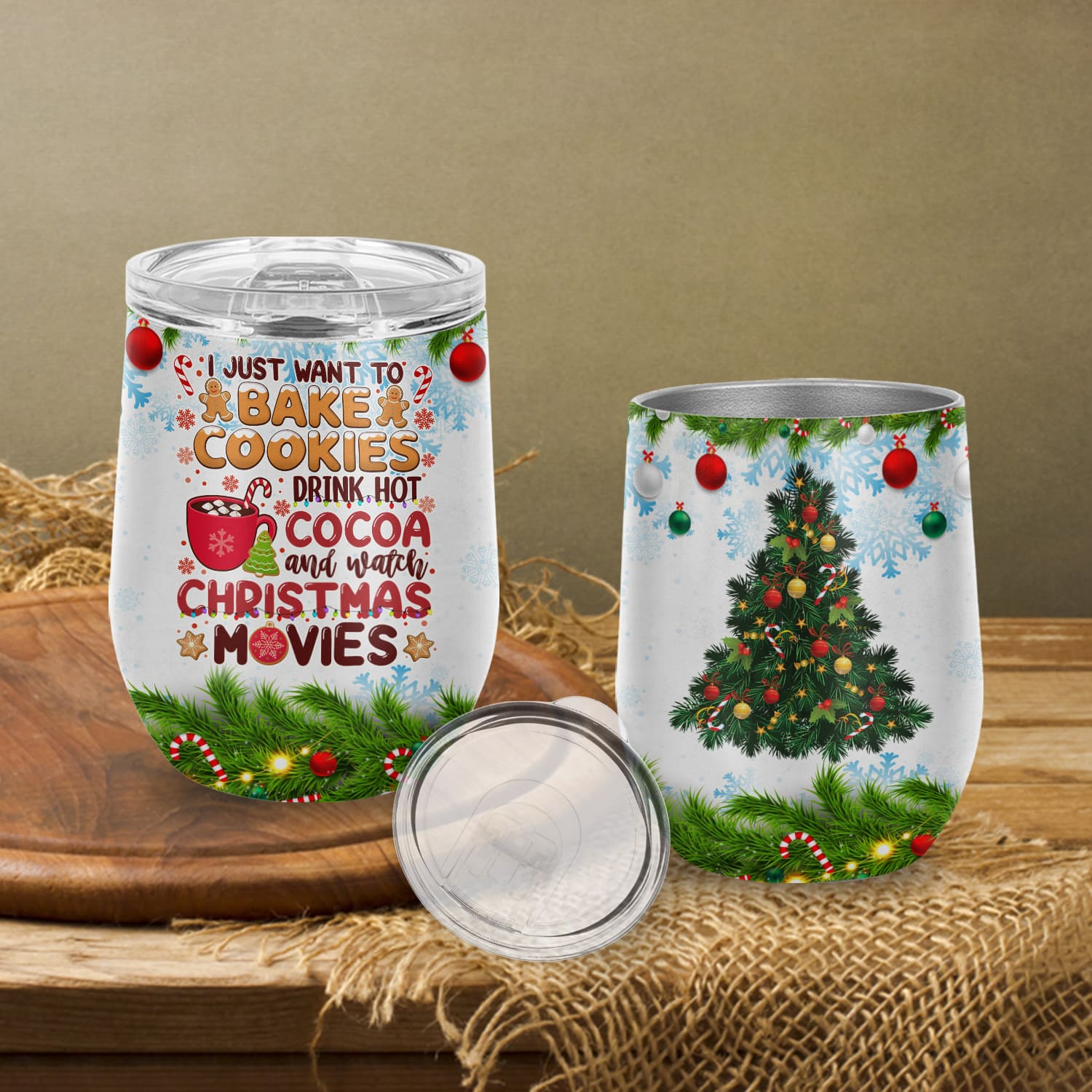 Let’s Shop I Just Want To Bake Cookies Drink Hot Cocoa and Watch Christmas Movies Insulated Wine Tumbler with Lid – Funny Christmas Movie Mugs!