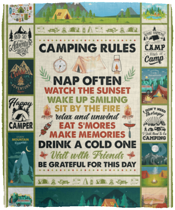 Camping Rules Nap Often Watch The Sunset Fleece Blanket – Premium Sherpa Blanket – Woven Blanket