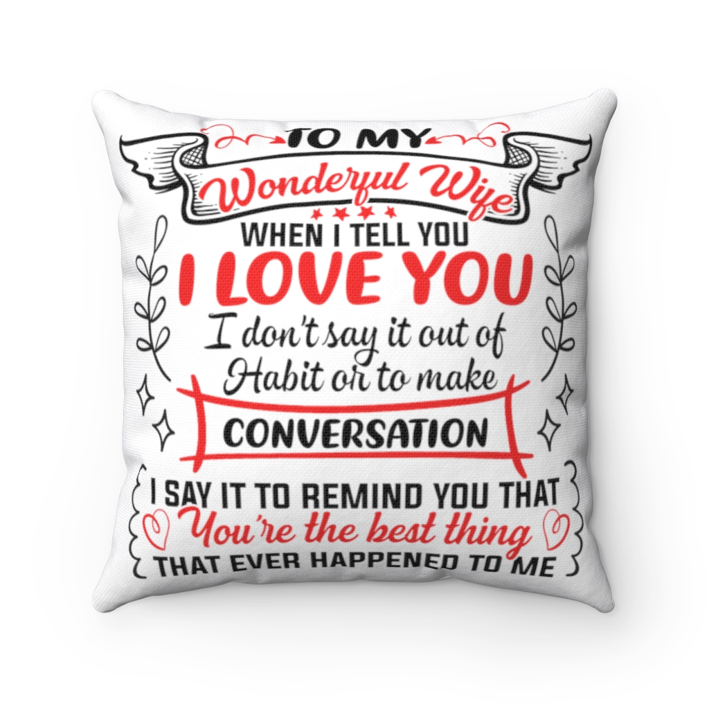 At CubeBik, besides throw pillows, we also offer tees, hoodies, sweaters, raglans, tanks, wall arts, canvases, posters, mugs, blankets, engraved jewelry, personalized necklaces, printed face masks, tote bags, hats, accessories and more on our website, so do not miss our other Wife Gift, Gifts For My Wife, I Love You Gifts For Her, Gifts For Wife Romantic, Wife Birthday Gifts, Birthday Gift For Wife From Husband, I Love You Pillow, To My Wife Pillow, To My Wife Necklace From Husband, Anniversary Gift For Her, Anniversary Gift For Wife, To My Wife Pillow related merchandise. Moreover, all the products are made-to-order and one of a kind custom designs you can’t get elsewhere in normal stores. Let’s discover CubeBik.com now and find your favorite personalized items. We can’t wait to surprise and build beautiful memories with you and your loved ones.