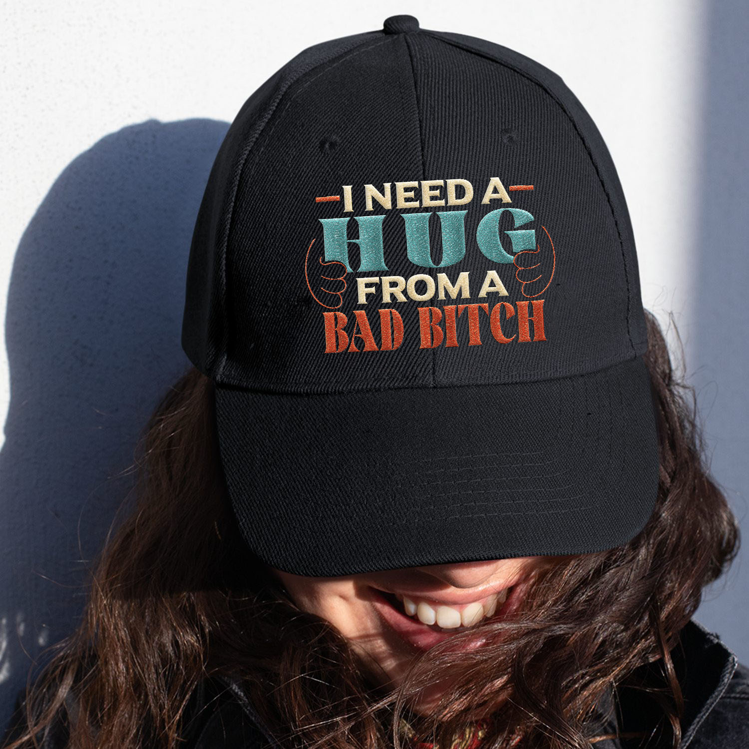 Let’s Shop I Need A Hug From A Bad Bitch Funny Humor Adult Saying Embroidered Twill Hat Adjustable Cap For Men Women!