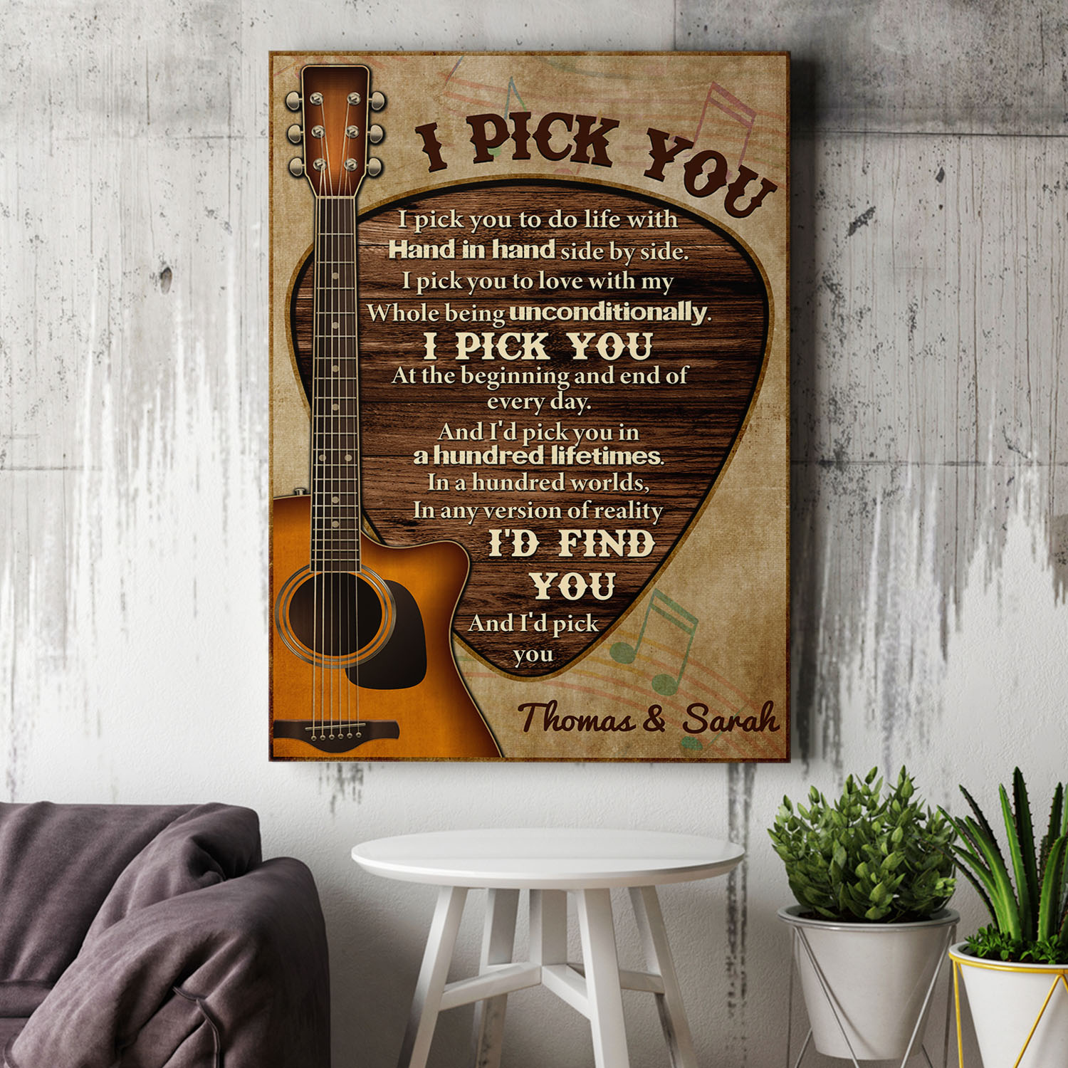 Let’s Shop Personalized Guitar Pick I Pick You To Do Life With Hand In Hand Framed Canvas Prints – Guitar Lover Unframed Poster!