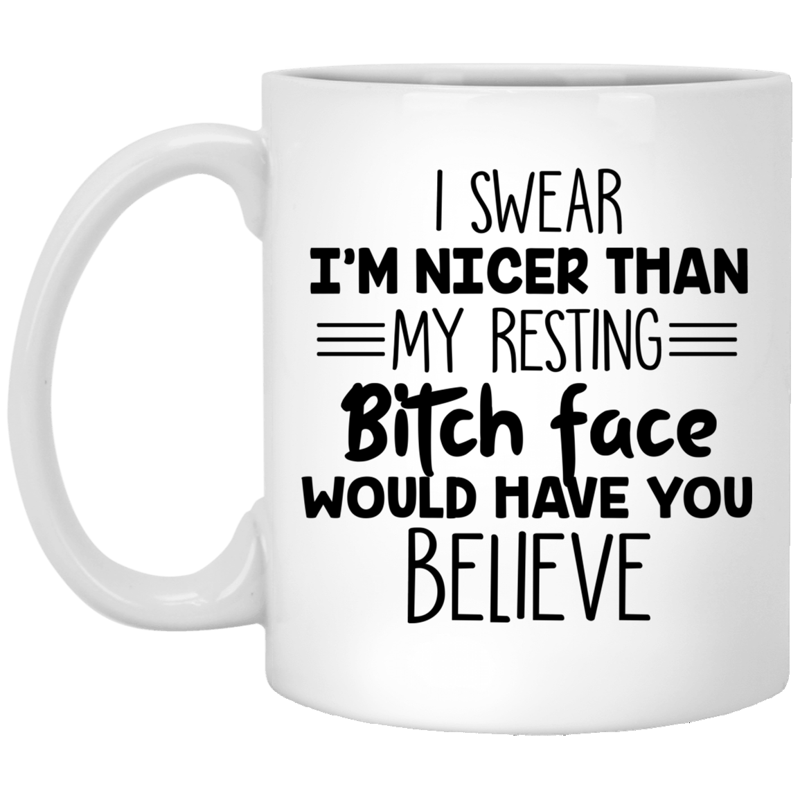 I Swear I’m Nicer Than My Resting Bitch Face Ceramic Coffee Mug – Beer Stein – Water Bottle – Color Changing Mug