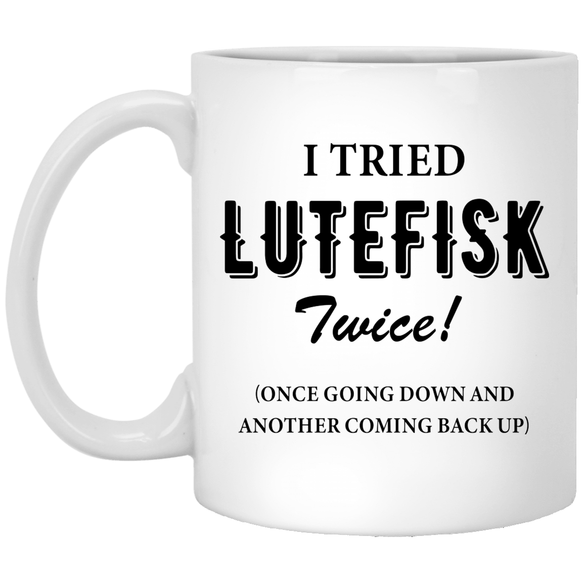 I Tried Lutefisk Twice Once Going Down And Another Coming Back Up Ceramic Coffee Mug – Beer Stein -Water Bottle
