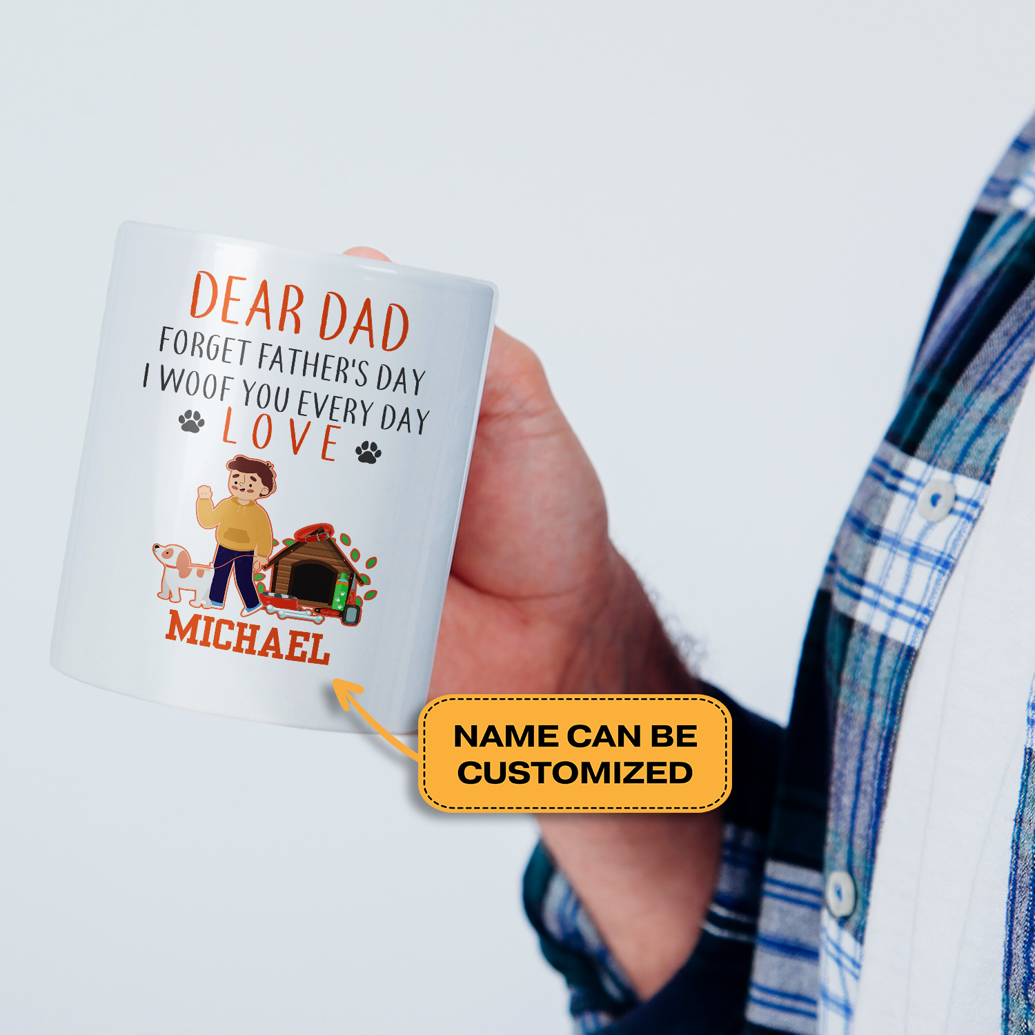 Let’s Shop Personalized Dog Dear Dad Forget Father’s Day I Woof You Everyday Mug – Beer Stein – Water Bottle – Color Changing Mug!