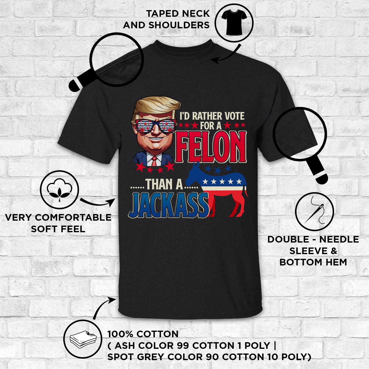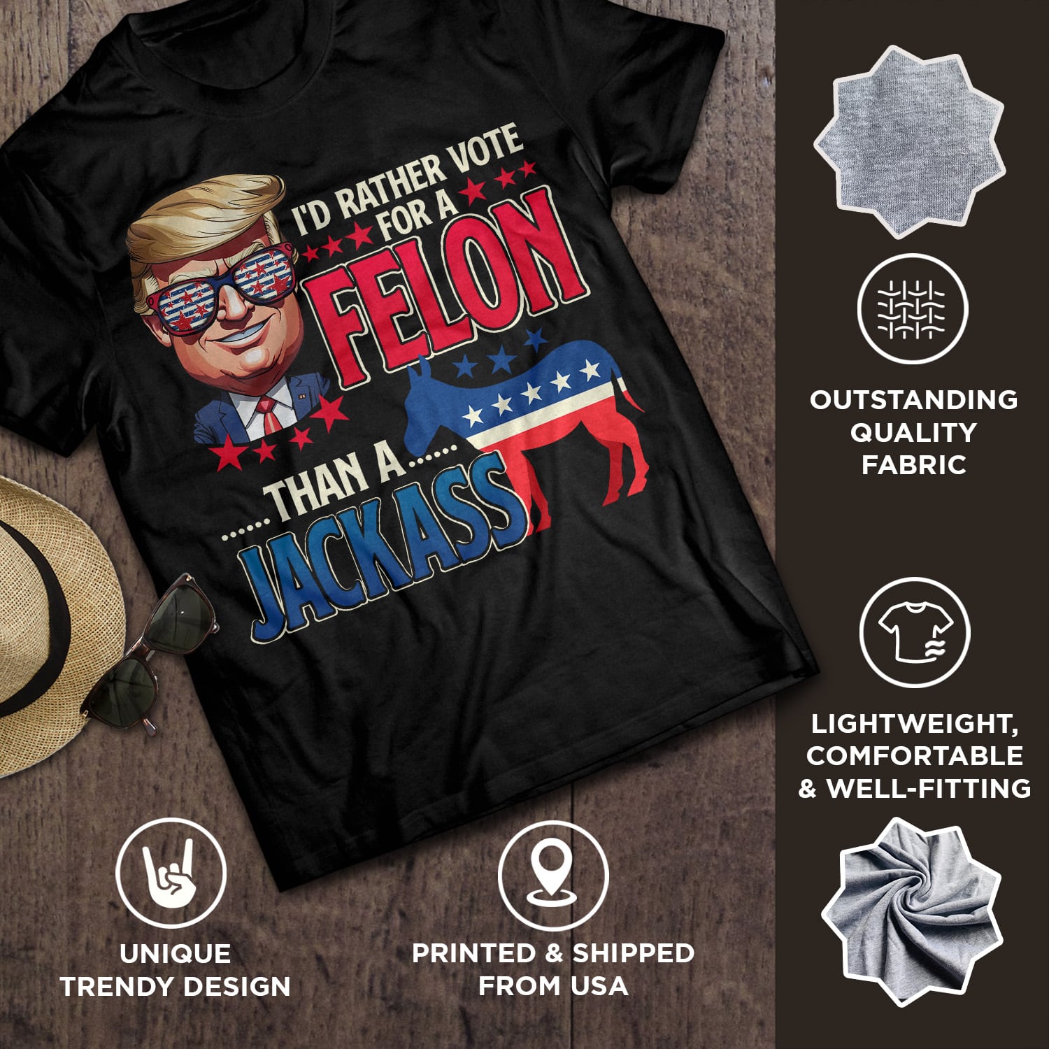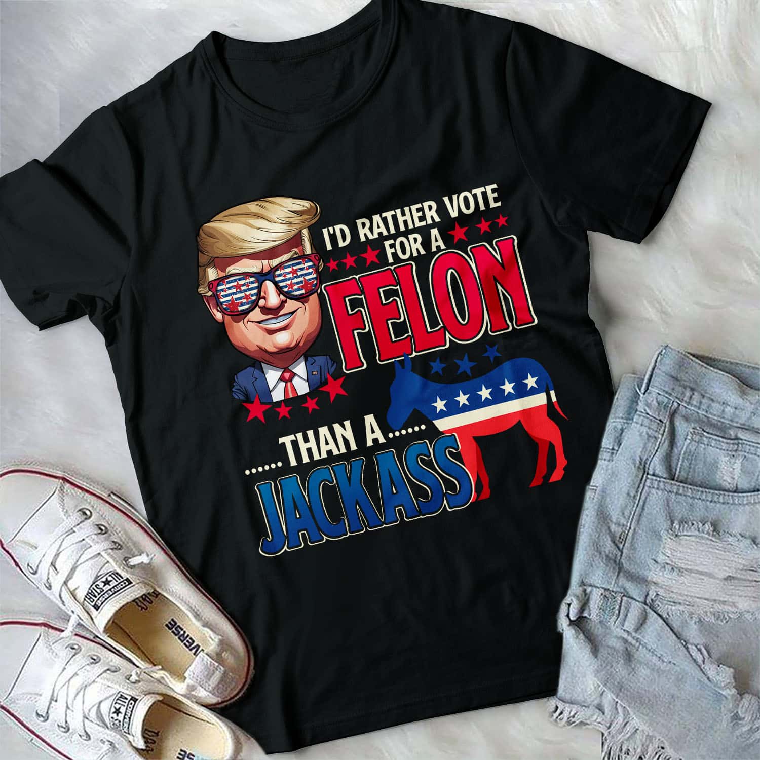 Are you spending too much time to find creative merchandise for you or suitable & special gifts for your mommy, your daddy, your son, your daughter, your children, your friends or someone you love? The struggle is over because we have various I’d Rather Vote for a Felon Than a Jackass, I’d Rather Vote for a Felon Than a Jack Ass, I Would Rather Vote for a Felon Than a Jackass, I’m Voting for Convicted Felon, I’m Voting for Convicted Felon Shirt, I Am Voting for Convicted Felon, Trump Convicted which will make perfect presents for your beloveds. In order to make your present stand out, we have created lots of unique and awesome customized photo gifts & personalized designs.