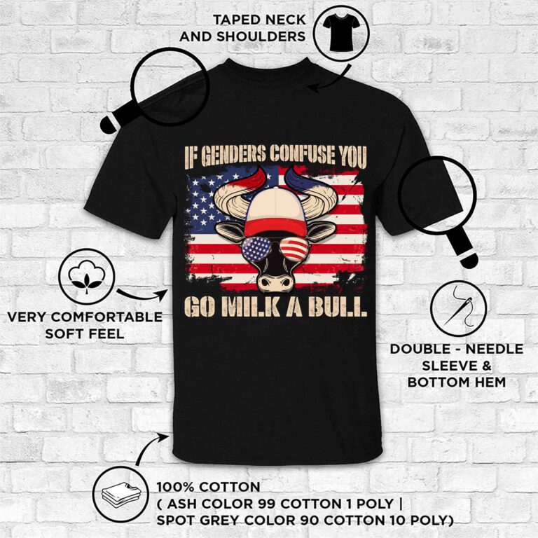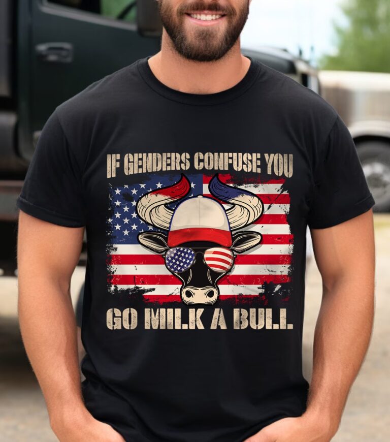 Are you spending too much time to find creative merchandise for you or suitable & special gifts for your mommy, your daddy, your son, your daughter, your children, your friends or someone you love? The struggle is over because we have various If Genders Confuse You Go Milk a Bull Shirt, If Genders Confuse You Shirt, If Genders Confuse You Go Milk a Bull T Shirt, If Genders Confuse You Go Milk a Bull Shirt Men, If Genders Confuse You Go Milk a Bull Vintage T-Shirt, Funny 4th of July Shirt which will make perfect presents for your beloveds. In order to make your present stand out, we have created lots of unique and awesome customized photo gifts & personalized designs.