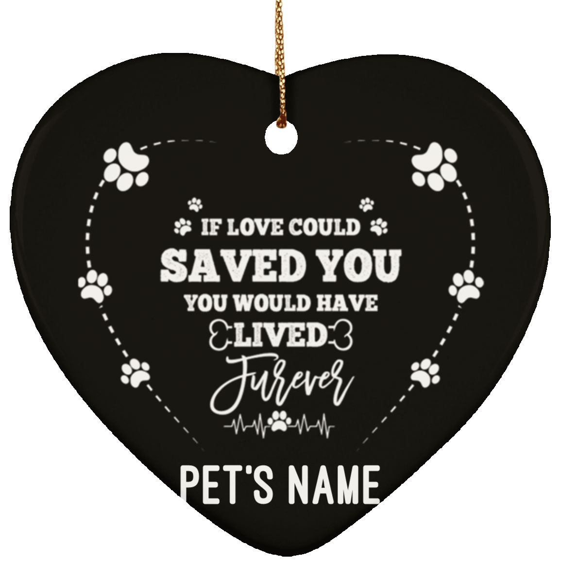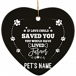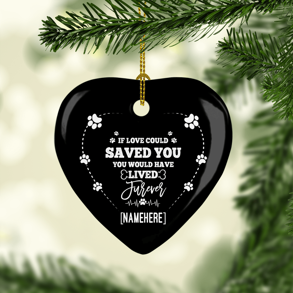Shop If Love Could Have Saved You Would Have Lived Furever Flat Heart Porcelain Ceramic Personalized Dog Memorial Christmas Ornament.