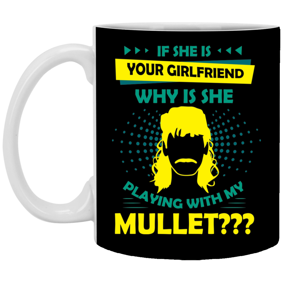 If She Is Your Girlfriend Why Is She Playing With My Mullet Ceramic Coffee Mug – Beer Stein – Water Bottle
