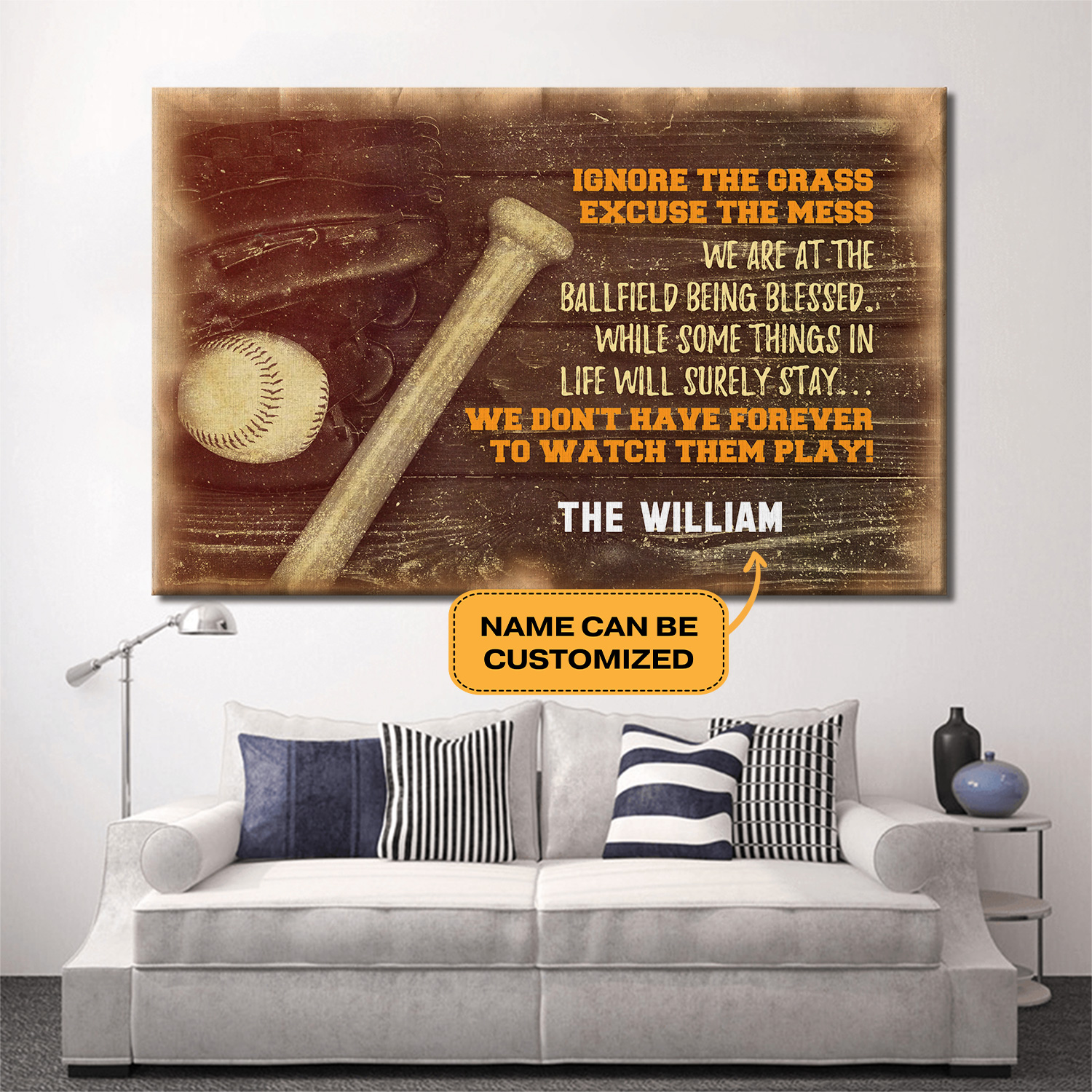 Let’s Shop Personalized Baseball Ignore the Grass Excuse the Mess Wrapped Framed Canvas Prints-Unframed Poster-Home Decor Wall Art!