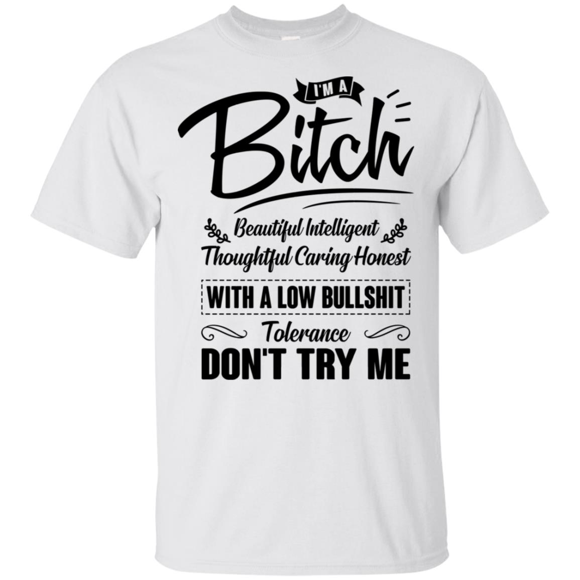 I’m A Bitch Beautiful Intelligent Thoughtful Caring Low Bull-shit Don’t Try Me Funny T-shirt – V-neck Tee