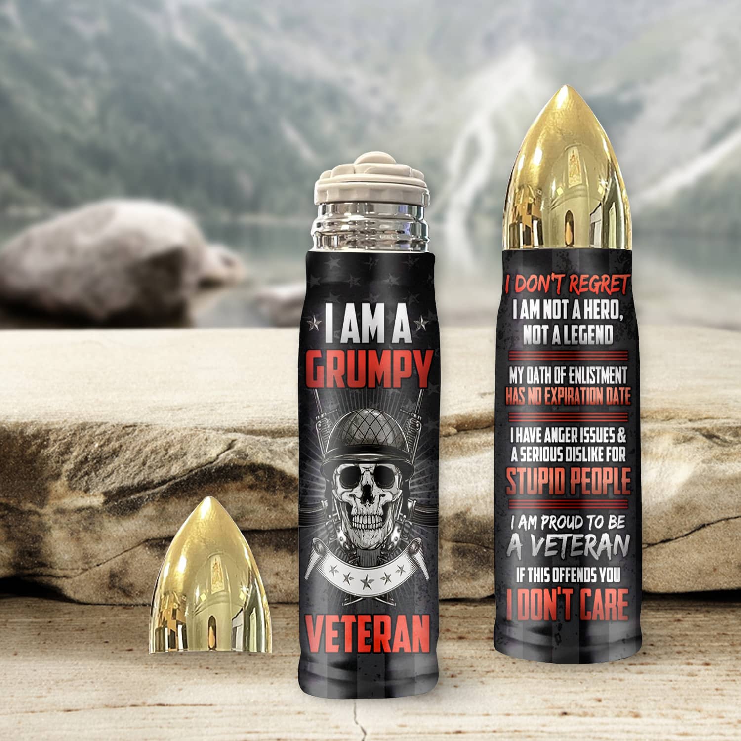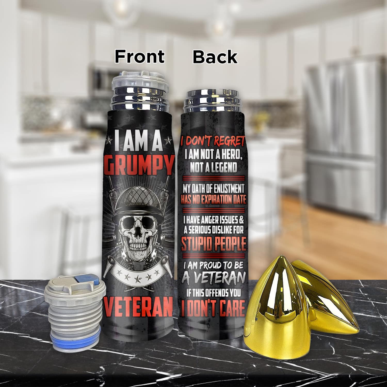 Let’s Shop I’m A Grumpy Veteran I Don’t Regret Bullet Shape Insulated Tumbler With Lid – Dad Grandpa Veteran Gifts Vacuum Insulated Travel Coffee Mug!
