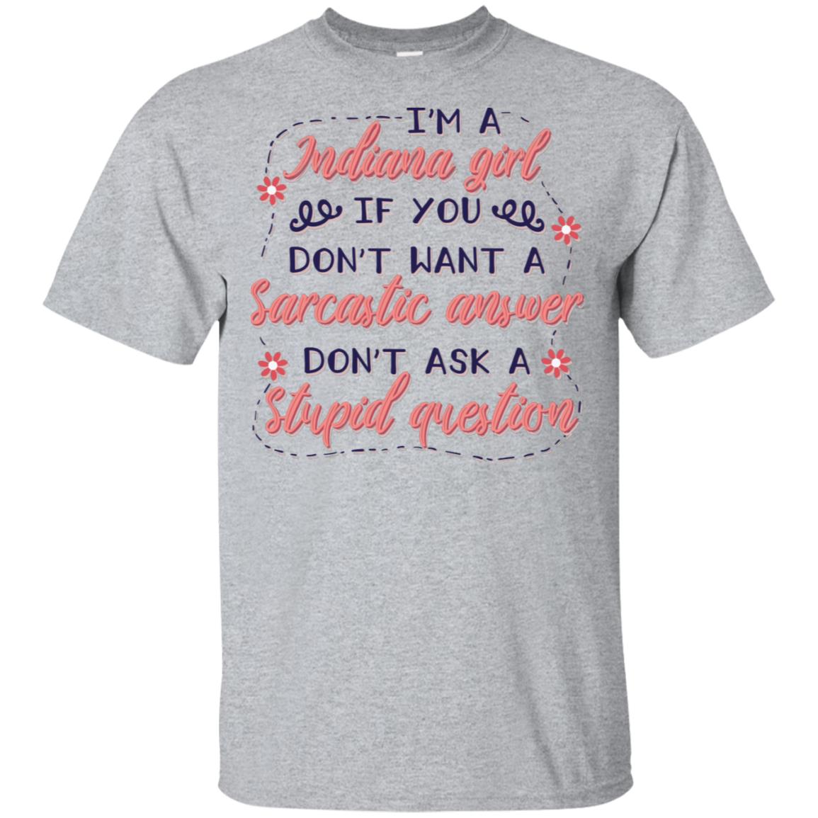 I’m A Indiana Girl If-You Don’t Want a Sarcastic Answer Don’t Ask a Stupid Question Funny T-Shirt-V-Neck Tee