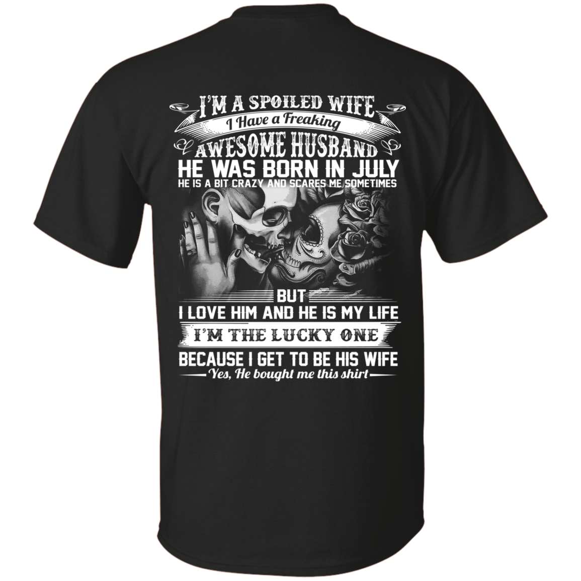 I’m A Spoiled Wife I Have A Freaking Awesome Husband He was Born in July Print On Back T-Shirt