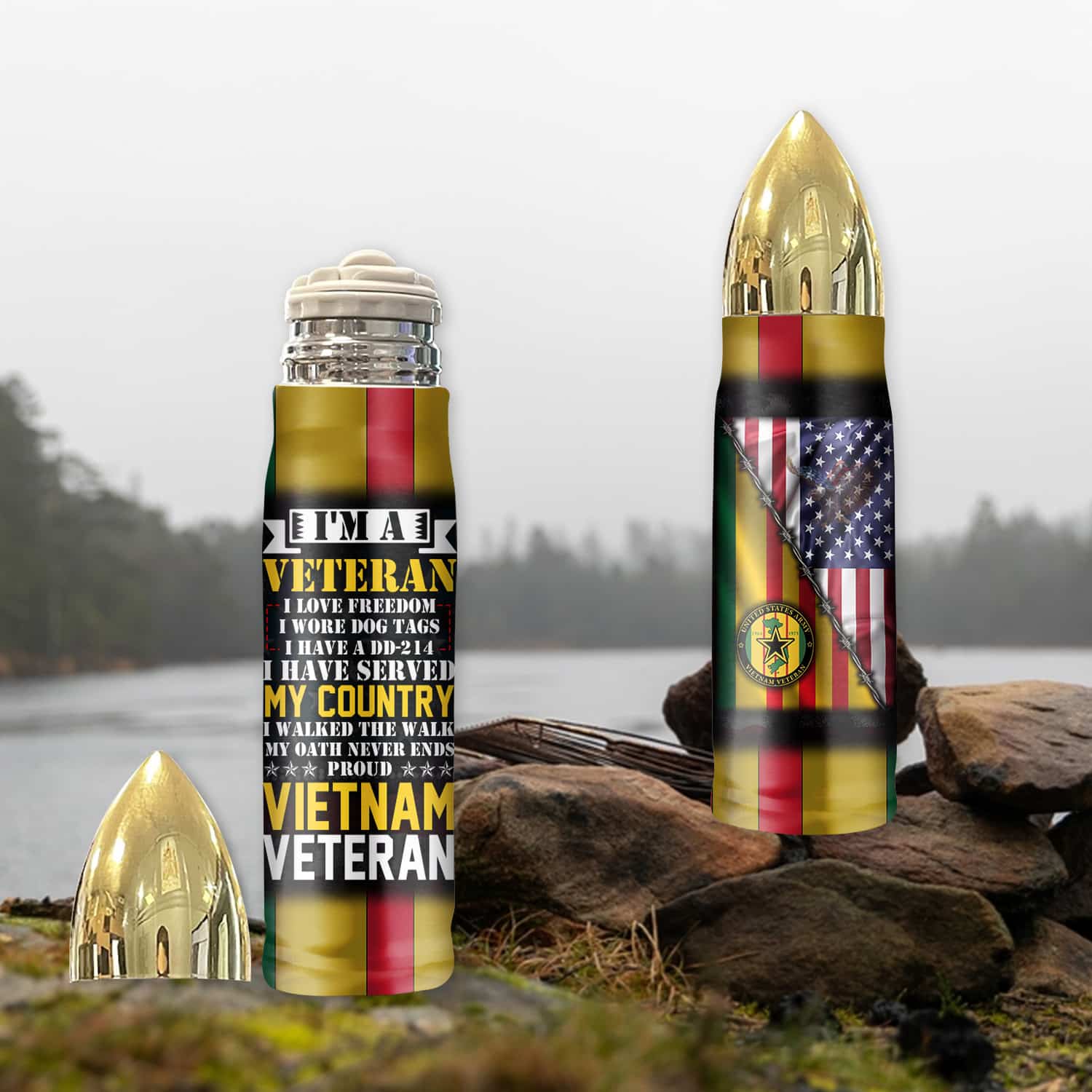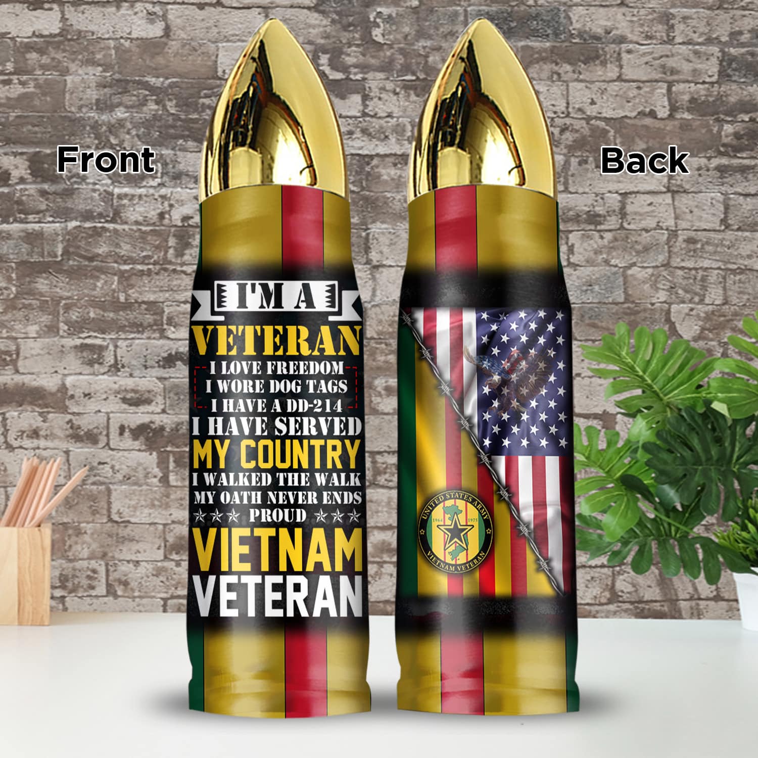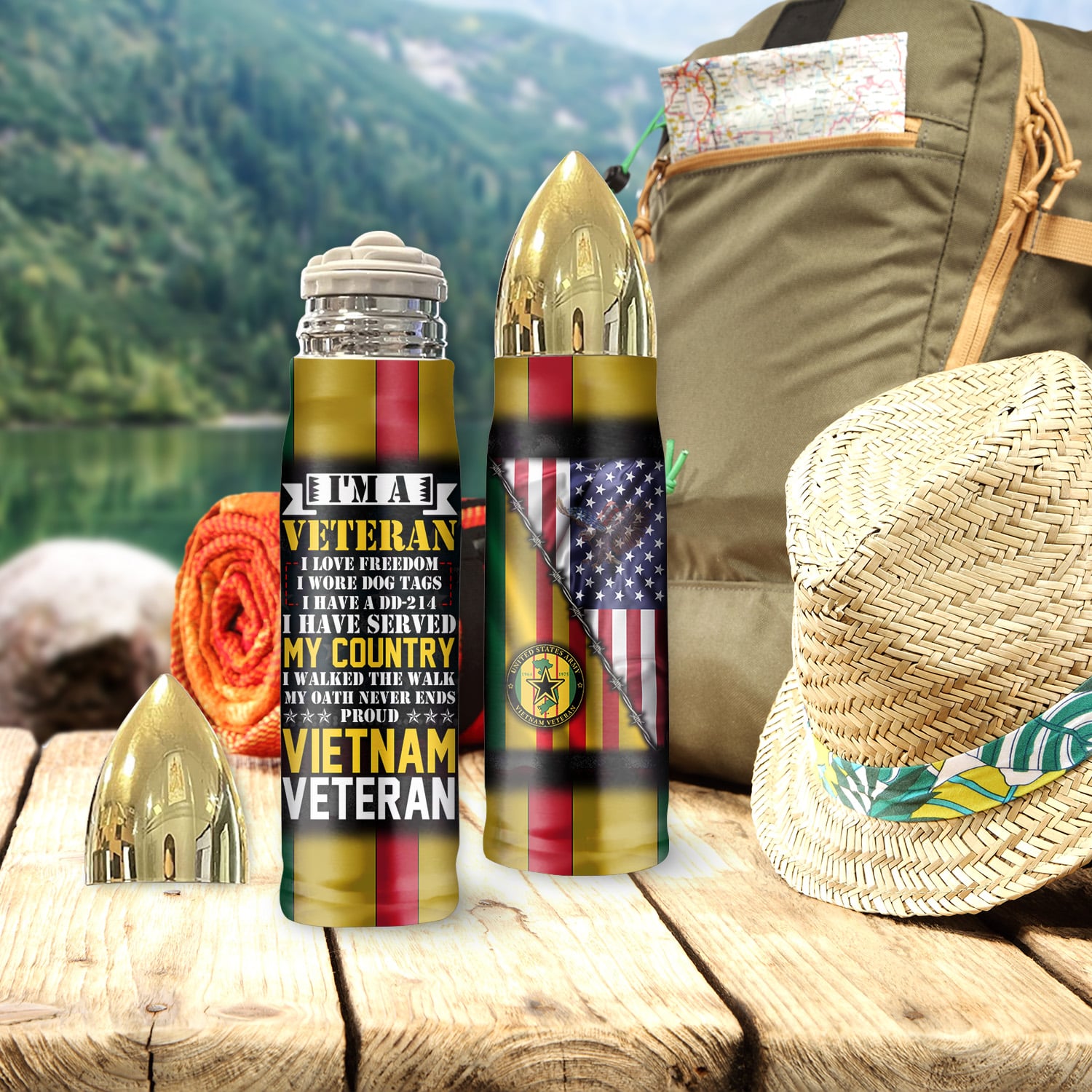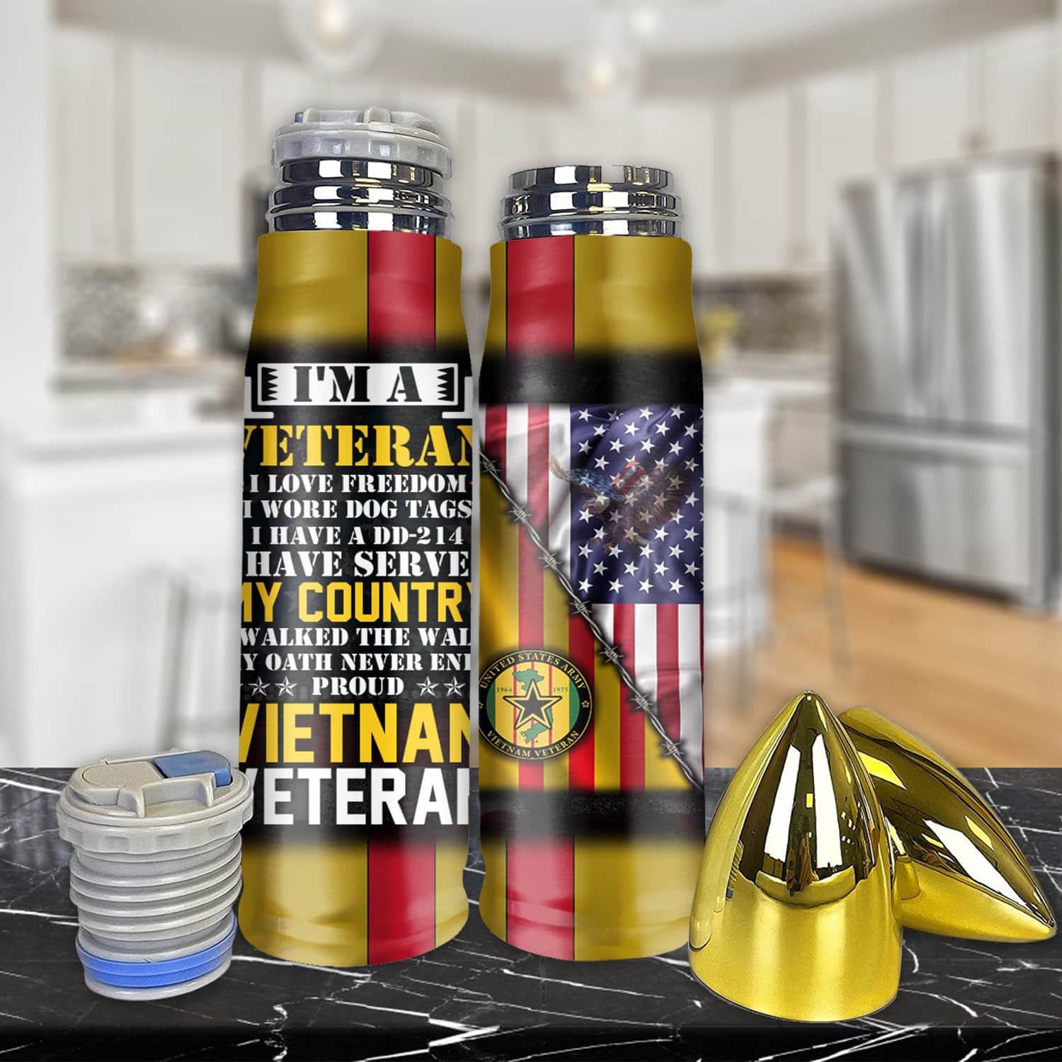Let’s Shop I’m A Veteran Proud VietNam Veteran Bullet Shape Insulated Tumbler With Lid – Love Freedom Veteran Gifts American Flag Travel Coffee Mug!