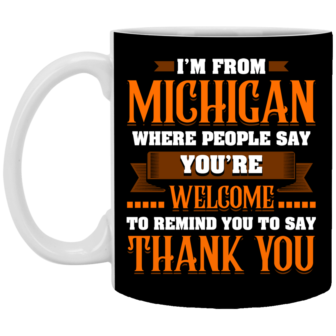 I’m from Michigan Where People Say You’re Welcome Ceramic Coffee Mug – Beer Stein – Water Bottle