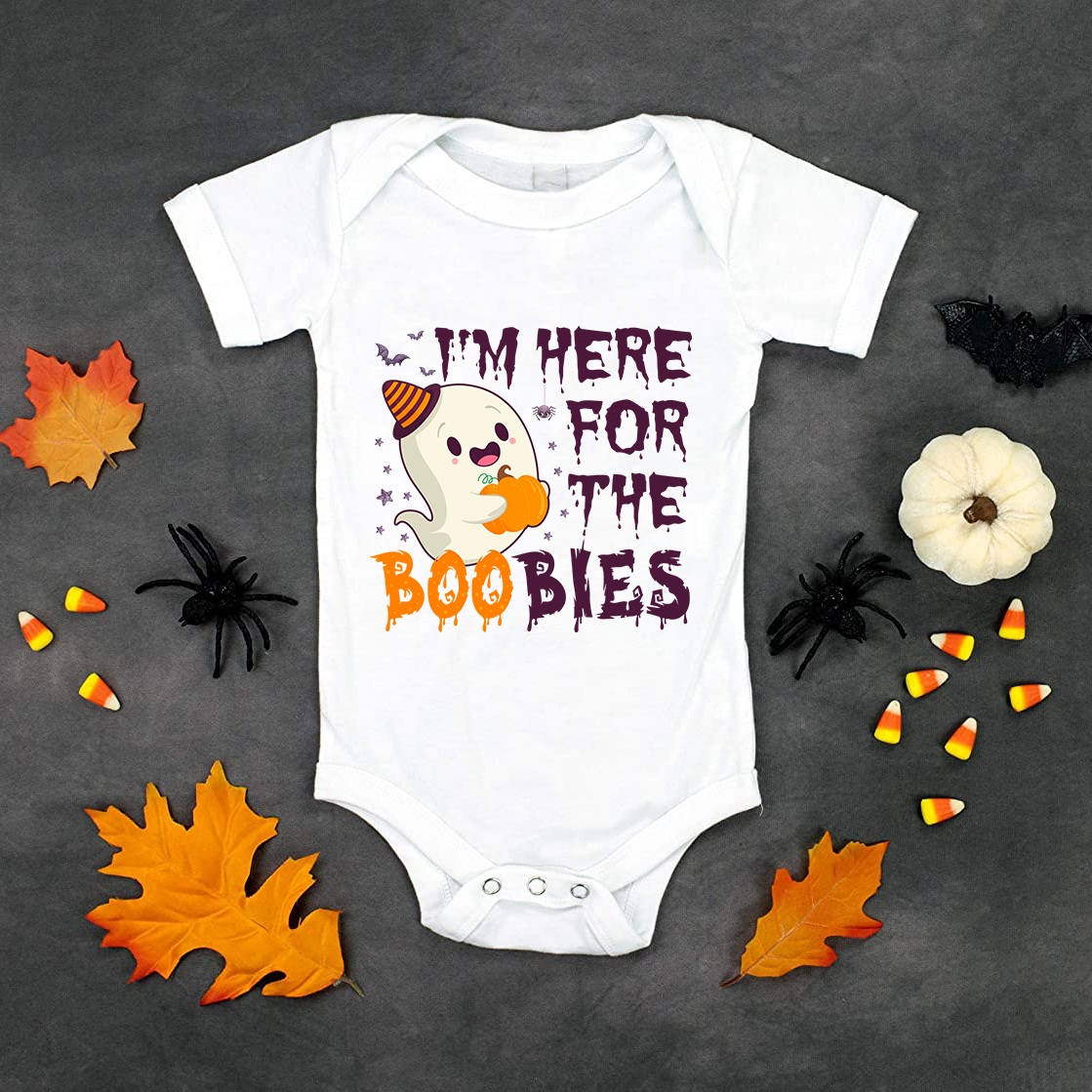 Let’s Shop I’m Here For The Boobies Halloween Baby Onesie – Toddler Baby Infant Bodysuit 1st Halloween Newborn Clothing!