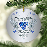 Let’s Shop I’m Not a Widow I’m a Wife to a Husband with Wings – Memorial Christmas Ornament Keepsake – Circle Ornament!