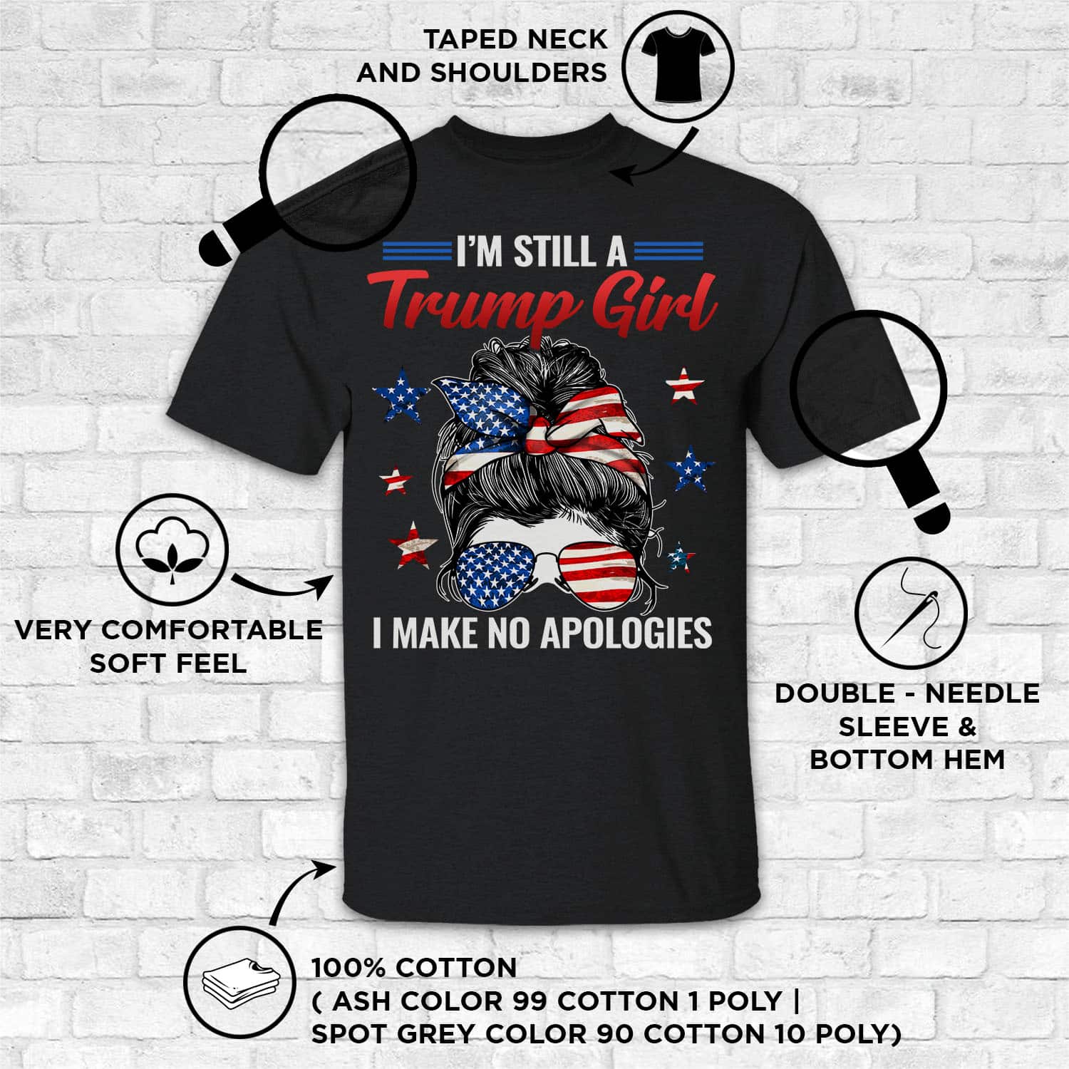 At CubeBik, besides custom apparel, we also offer tees, hoodies, sweaters, raglans, tanks, wall arts, canvases, posters, mugs, blankets, engraved jewelry, personalized necklaces, printed face masks, throw pillows, tote bags, hats, accessories and more on our website, so do not miss our other No Apologies T Shirt,I Make No Apologies,Trump 2024 for Women,I Make No Apologies T’shirt,Women Tee Shirt,Trump 2024,I’m Still a Trump Girl Tee Shirt,Trump Girl Shirt,Trump Shirt for Women,Trump Girl Tee,Trump Girl Back Shirt. Moreover, all the products are made-to-order and one of a kind custom designs you can’t get elsewhere in normal stores. Let’s discover CubeBik.com now and find your favorite personalized items. We can’t wait to surprise and build beautiful memories with you and your loved ones.