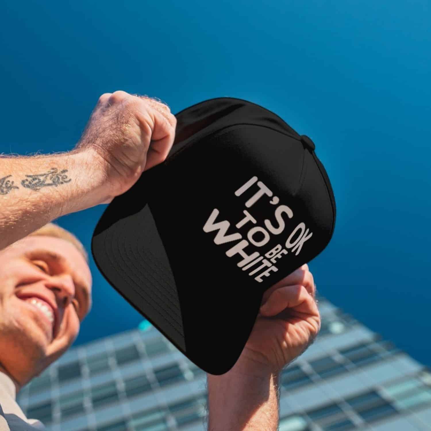 Let’s Shop It’s Ok to Be White – I’m White and I’m Proud Twill Cap – High-Profile Snapback Hat – Trucker Hat!