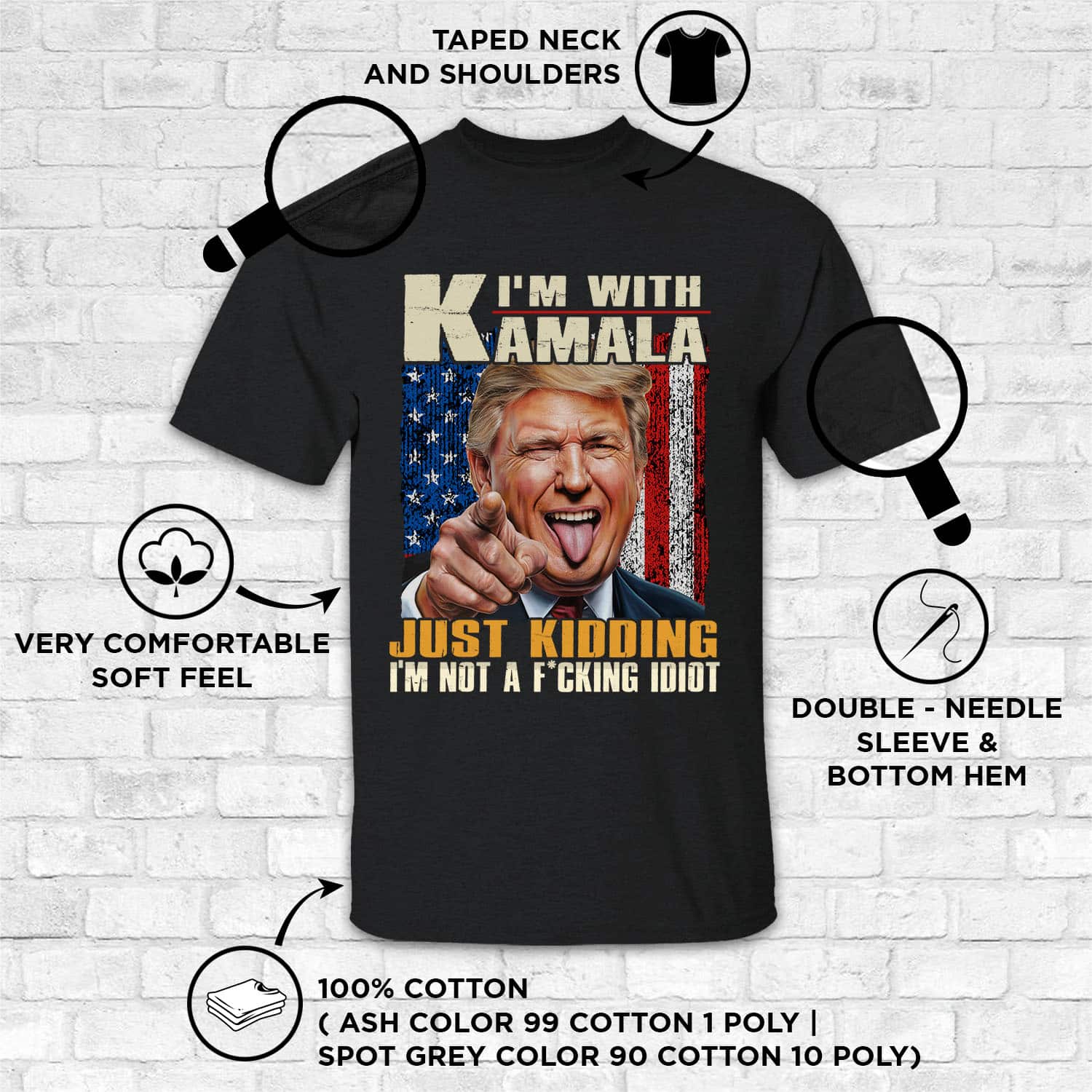 At CubeBik, besides custom apparel, we also offer tees, hoodies, sweaters, raglans, tanks, wall arts, canvases, posters, mugs, blankets, engraved jewelry, personalized necklaces, printed face masks, throw pillows, tote bags, hats, accessories and more on our website, so do not miss our other I’m with Kamala Just Kidding Not Idiot T-Shirt, I’m with Kamala Just Kidding Shirt, I’m with Kamala Just Kidding I’m Not a Idiot Humor T-Shirt, I’m with Kamala Just Kidding Not Idiot Shirt, Funny Trump Kamala Shirt, Trump 2024 Shirts for Men. Moreover, all the products are made-to-order and one of a kind custom designs you can’t get elsewhere in normal stores. Let’s discover CubeBik.com now and find your favorite personalized items. We can’t wait to surprise and build beautiful memories with you and your loved ones.