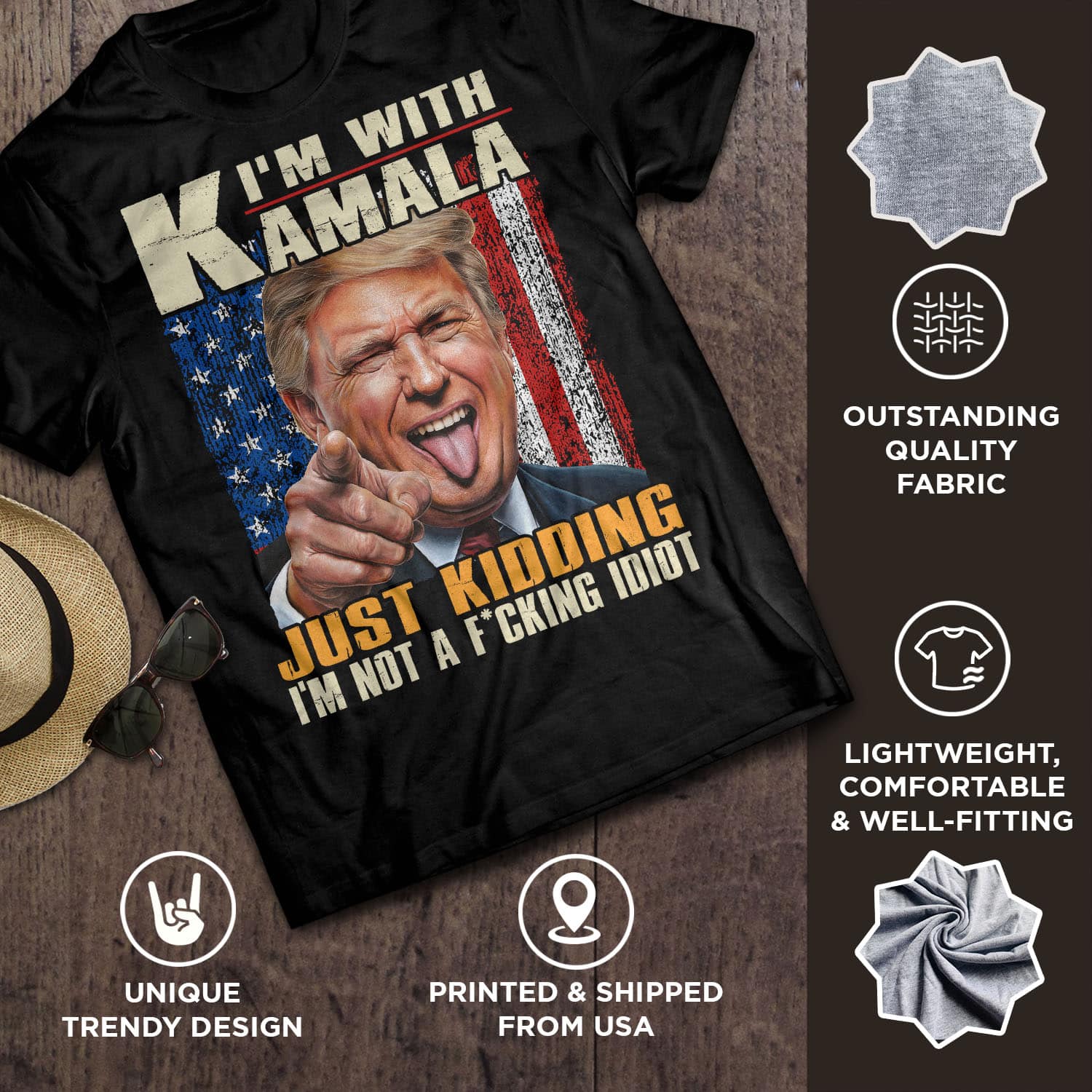 Are you spending too much time to find creative merchandise for you or suitable & special gifts for your mommy, your daddy, your son, your daughter, your children, your friends or someone you love? The struggle is over because we have various I’m with Kamala Just Kidding Not Idiot T-Shirt, I’m with Kamala Just Kidding Shirt, I’m with Kamala Just Kidding I’m Not a Idiot Humor T-Shirt, I’m with Kamala Just Kidding Not Idiot Shirt, Funny Trump Kamala Shirt, Trump 2024 Shirts for Men which will make perfect presents for your beloveds. In order to make your present stand out, we have created lots of unique and awesome customized photo gifts & personalized designs.