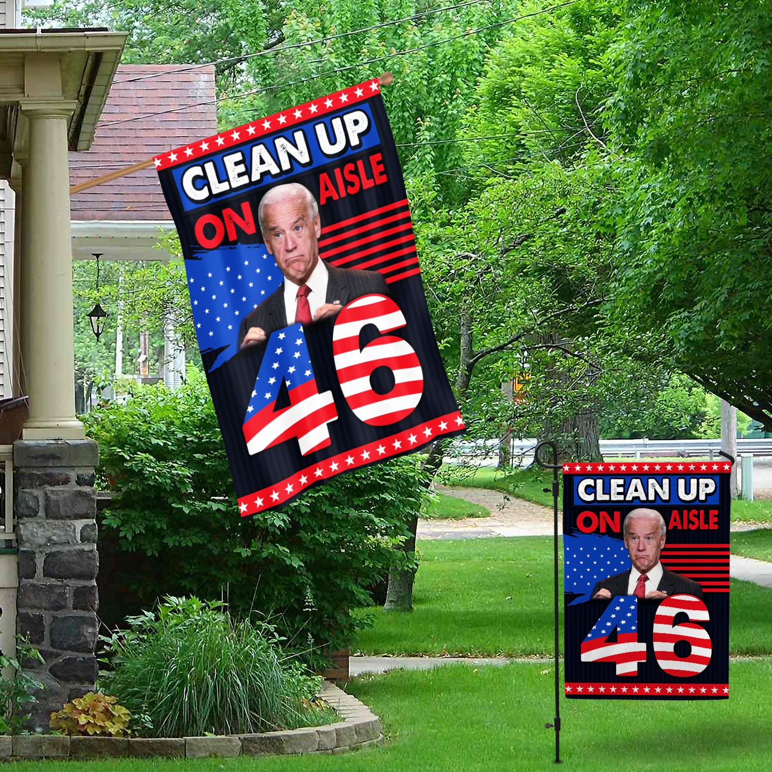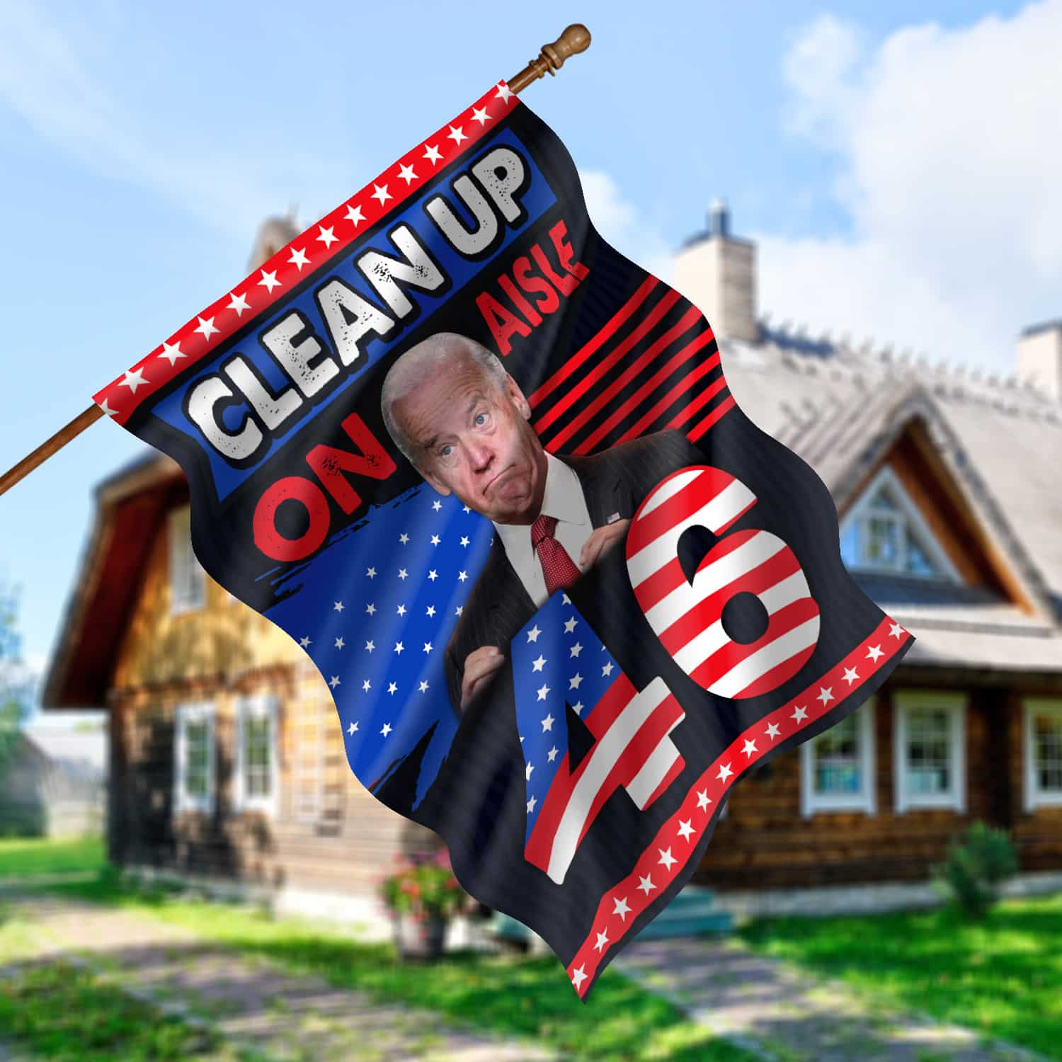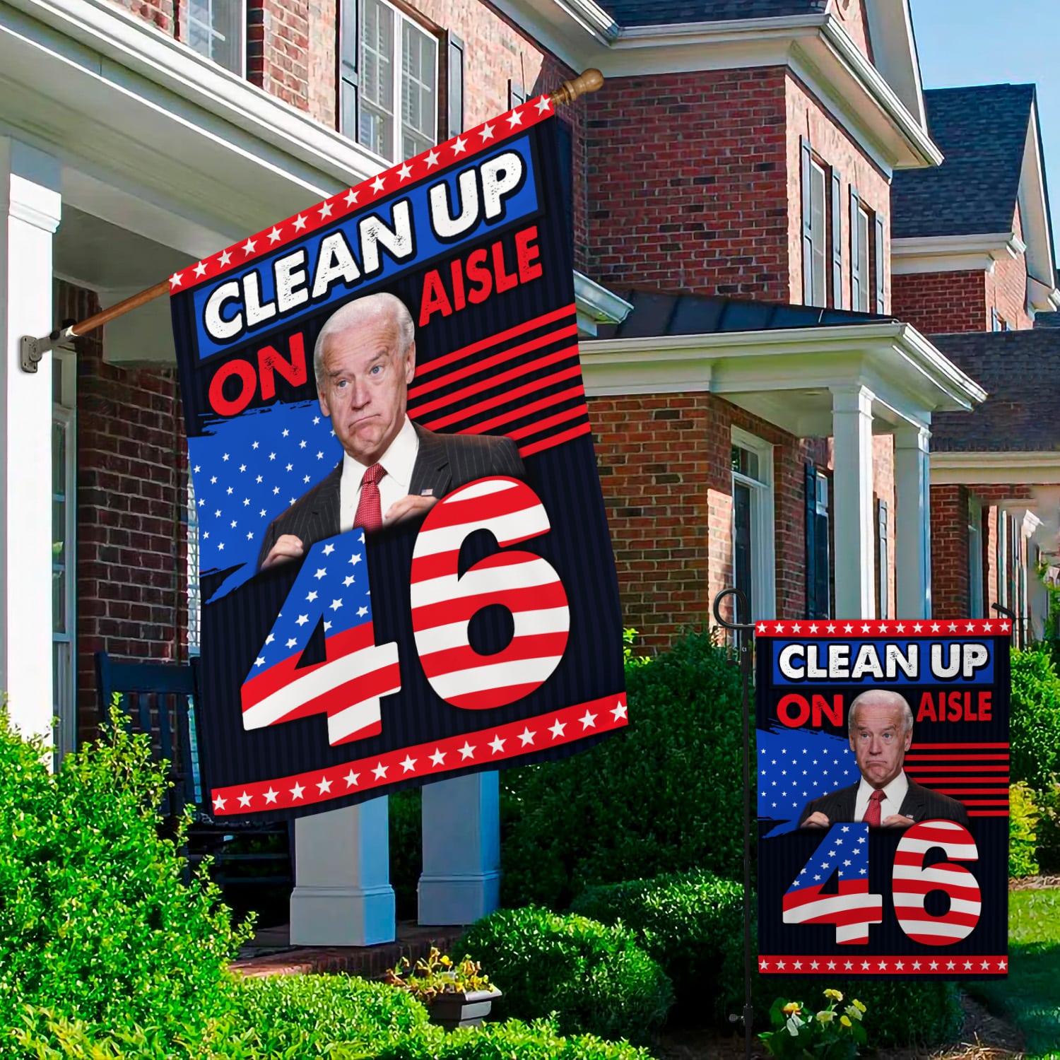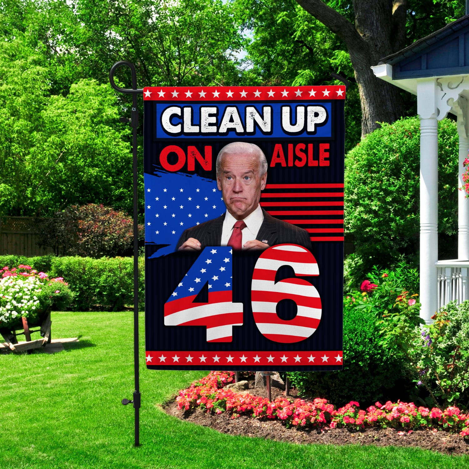Let’s Shop Clean Up On Aisle 46 Decorative Garden Flag – Indoor Outdoor Flag – House Flag – Impeach Joe Biden Flag!