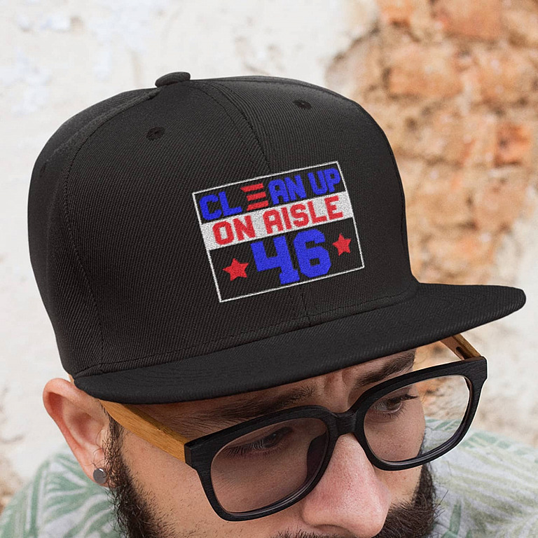 Let’s Shop Clean Up On Aisle 46 Not My President Twill Cap – High-Profile Snapback Hat – Trucker Hat!