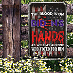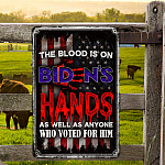 Let’s Shop The Blood Is On Biden’s Hands As Well As Anyone Who Voted For Him Decorative Metal Sign – Biden Afghanistan Sign!