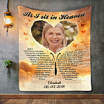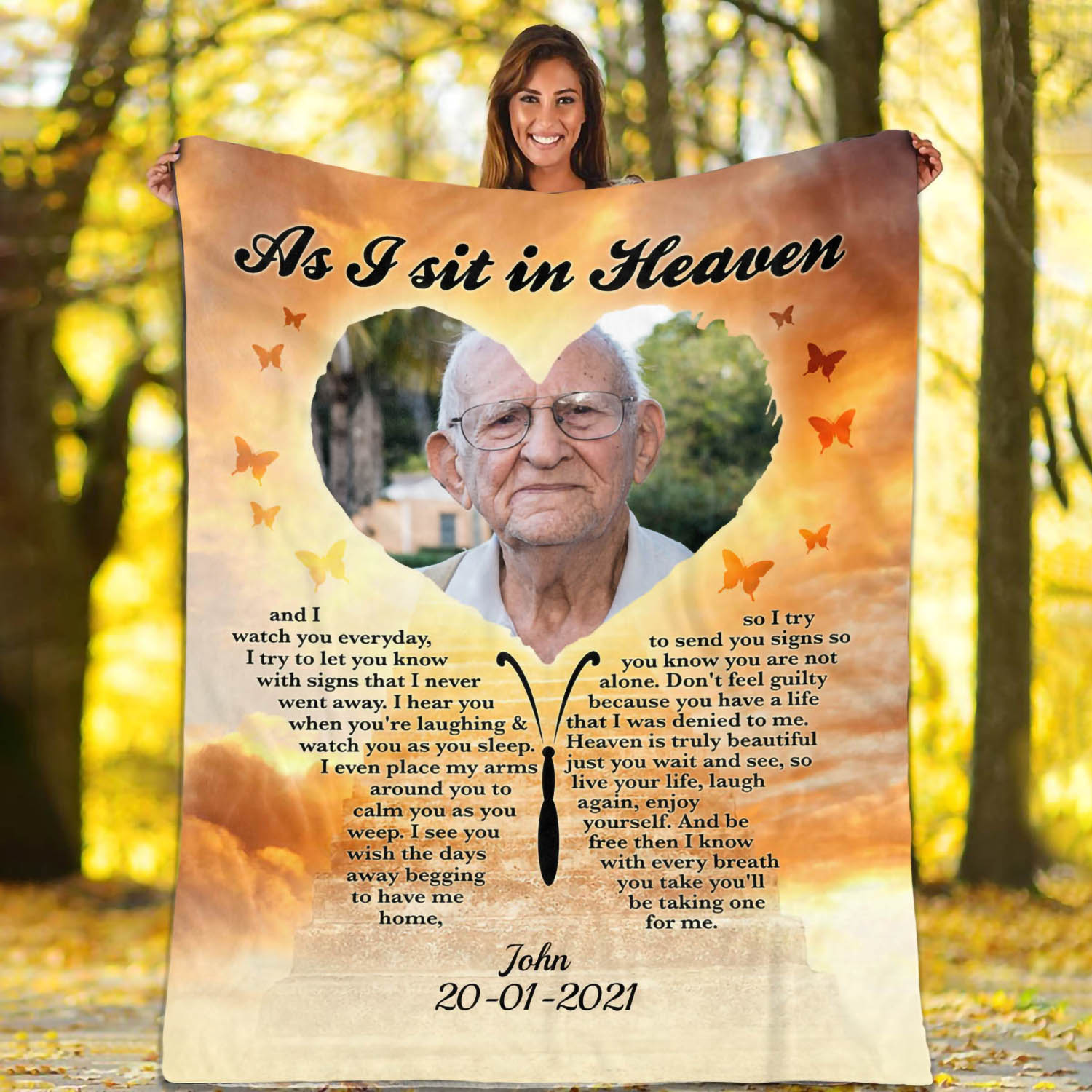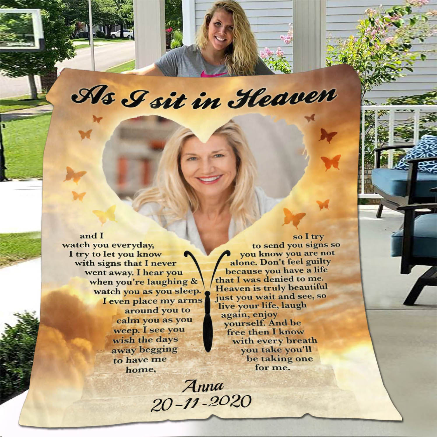 Let’s Shop As I Sit In Heaven Personalized Photo Name Memorial Blanket – Memory Butterfly Custom Image With Name Blanket!