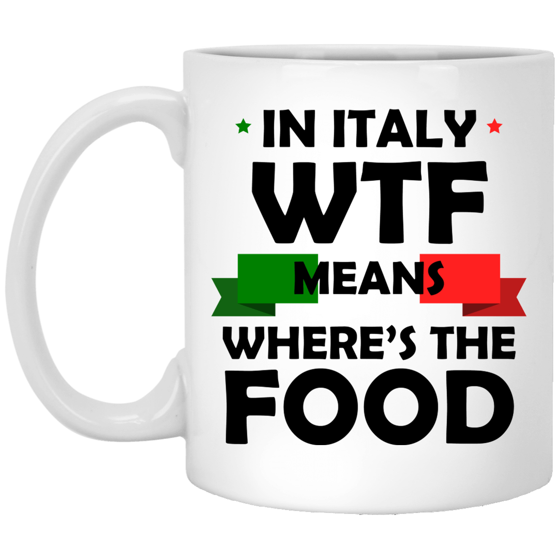 In Italy Wtf Means Where’s the Food Ceramic Coffee Mug – Beer Stein – Water Bottle – Color Changing Mug
