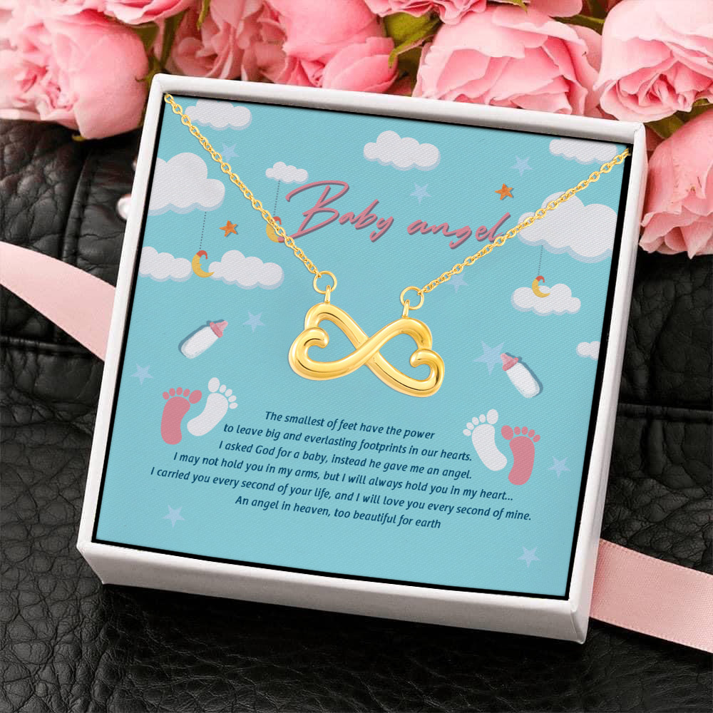 Let’s Shop Baby Angel the Littlest Feet Make the Biggest Footprints in Our Hearts Infinity Heart Pendant Necklace!