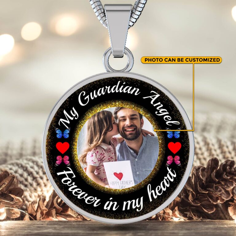 Let’s Shop Custom Photo My Guardian Angel Necklace – Forever In My Heart Necklace – Memorial Photo Circle Pendant!