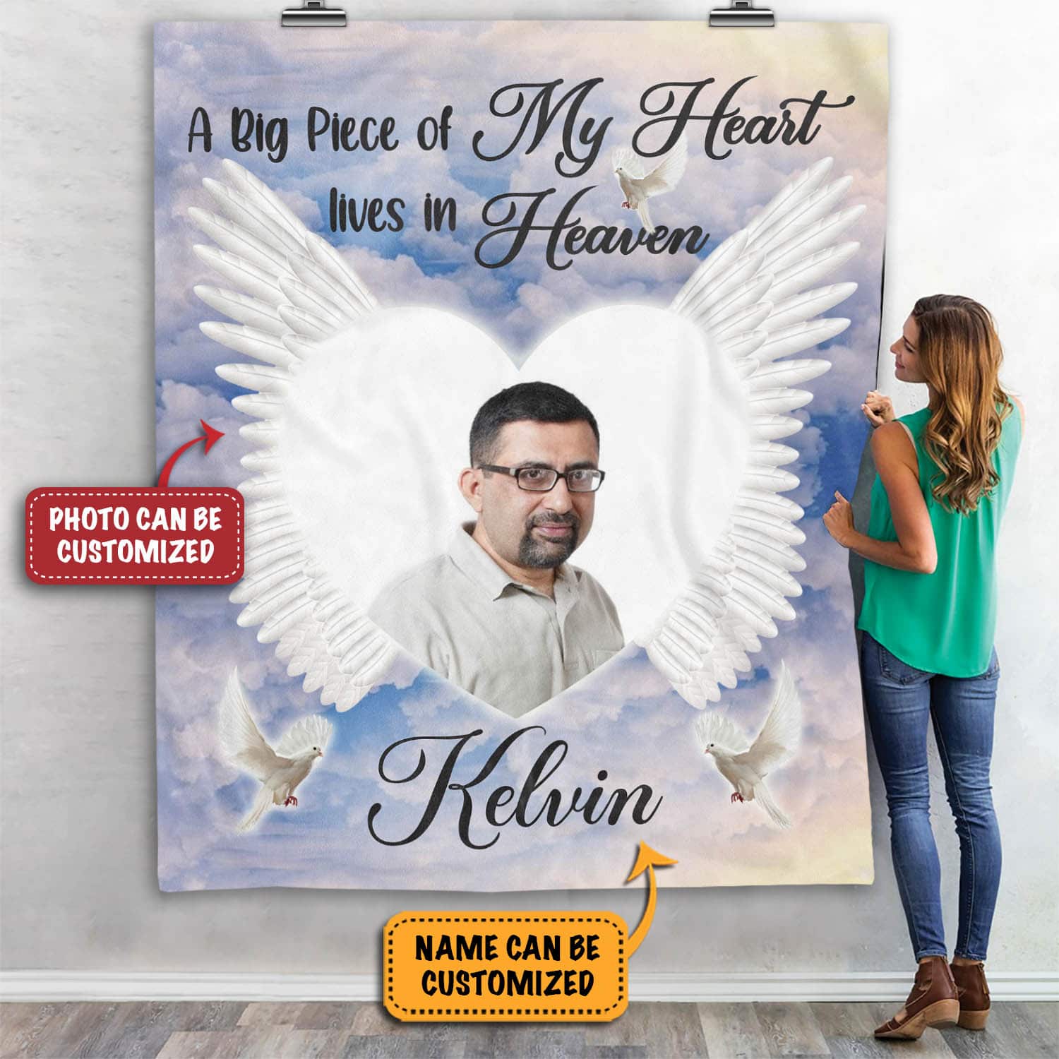 Let’s Shop Custom Photo A Big Piece Of My Heart Lives In Heaven Memorial Fleece Blanket – Sherpa Blanket – Woven Blanket!