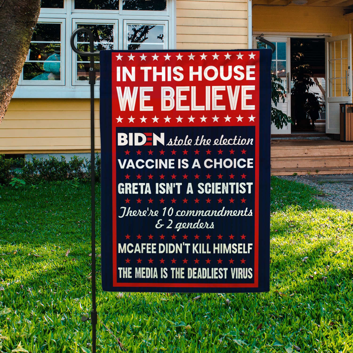 Let’s Shop In This House We Believe Biden Stole the Election Media is The Deadliest Virus Garden Flag – House Flag – Wall Flag!