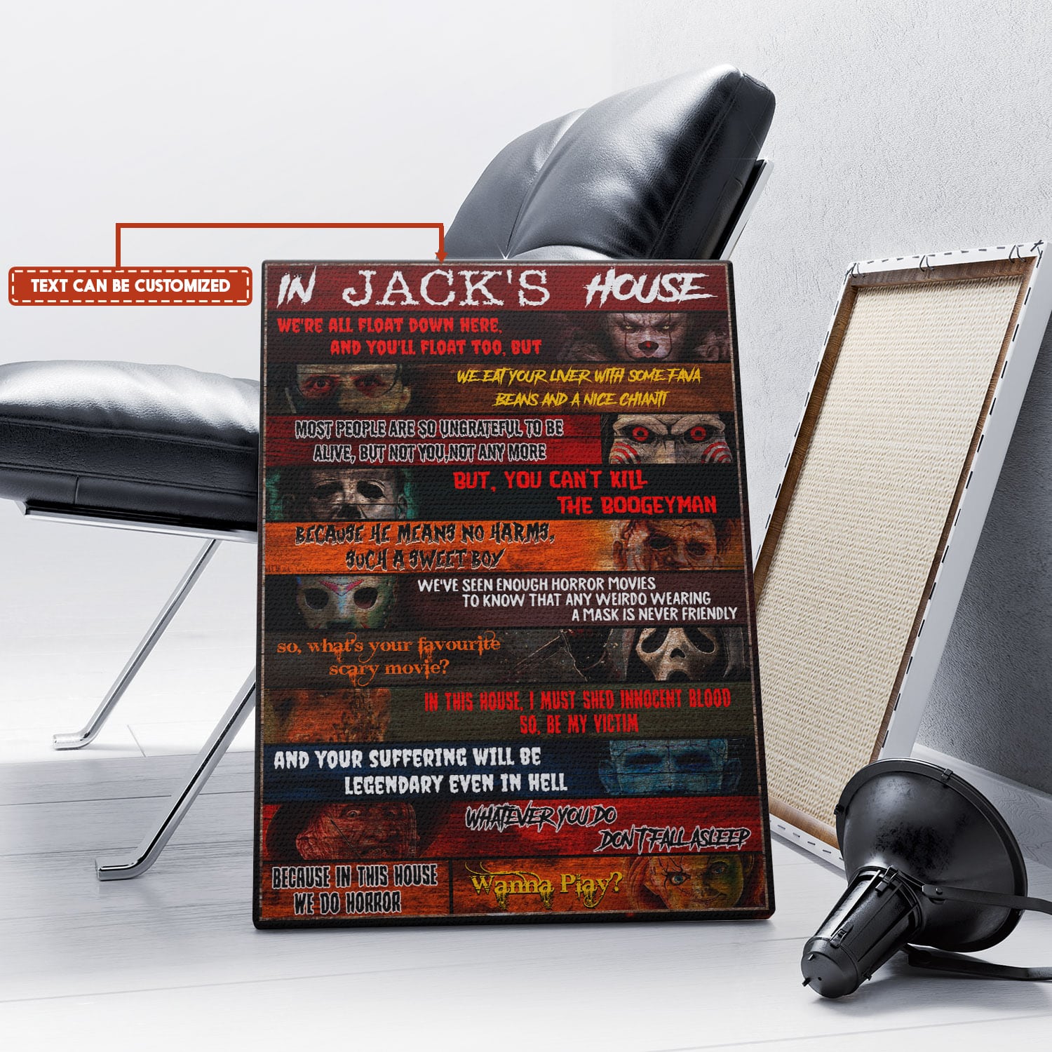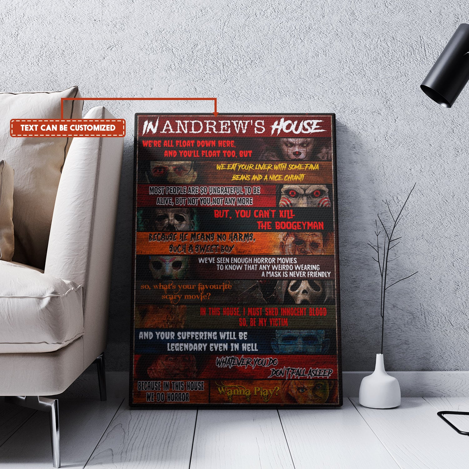 Let’s Shop Personalized Name In This House Horror Movies Characters Gallery Wrapped Framed Canvas Print – Home Decor Wall Art – Poster!