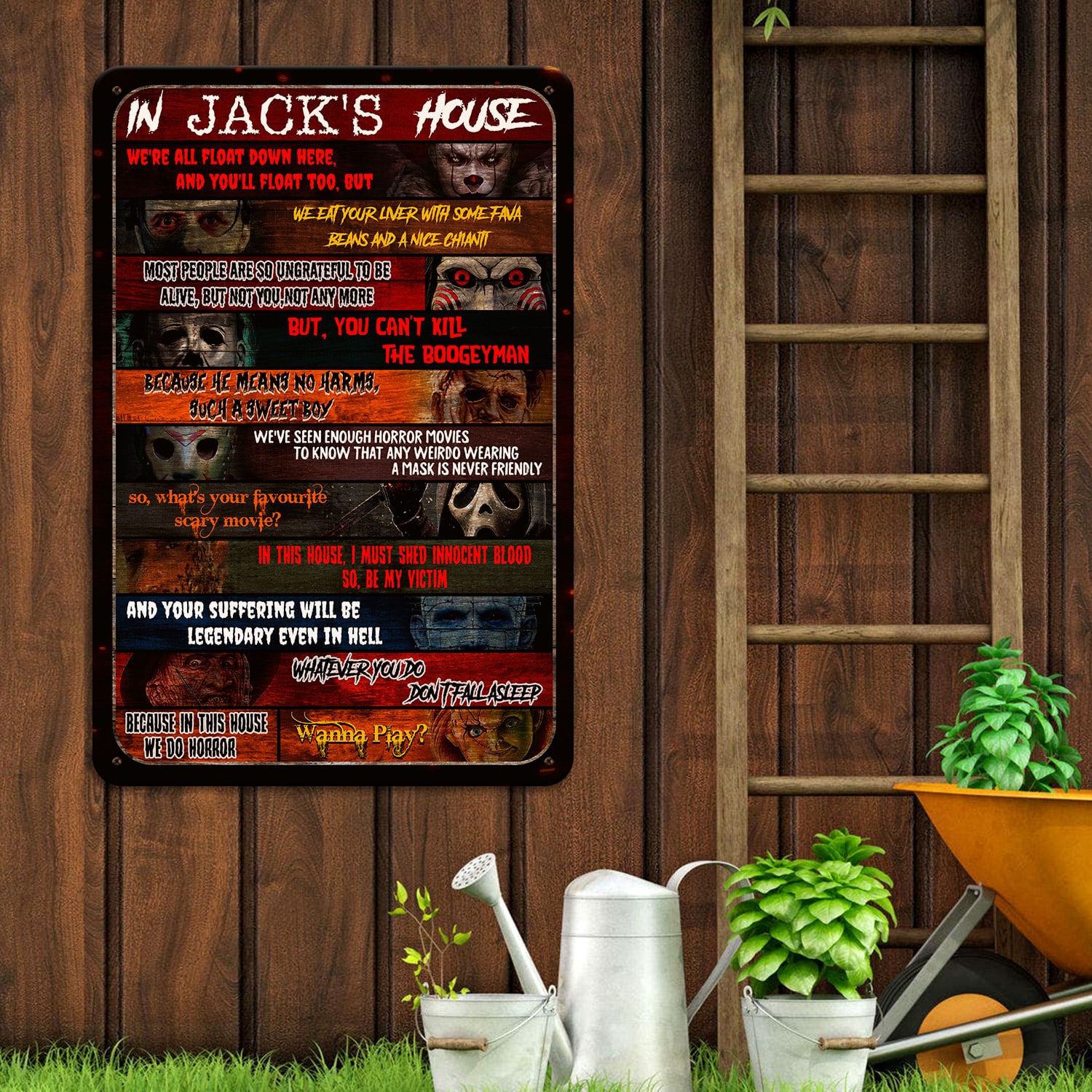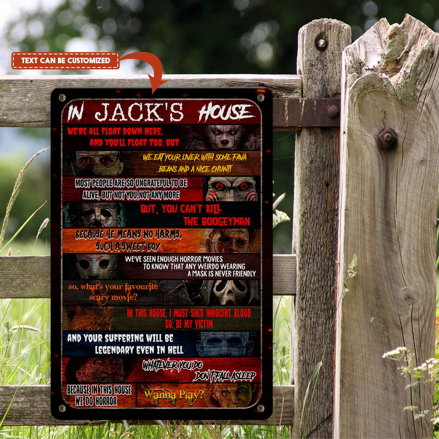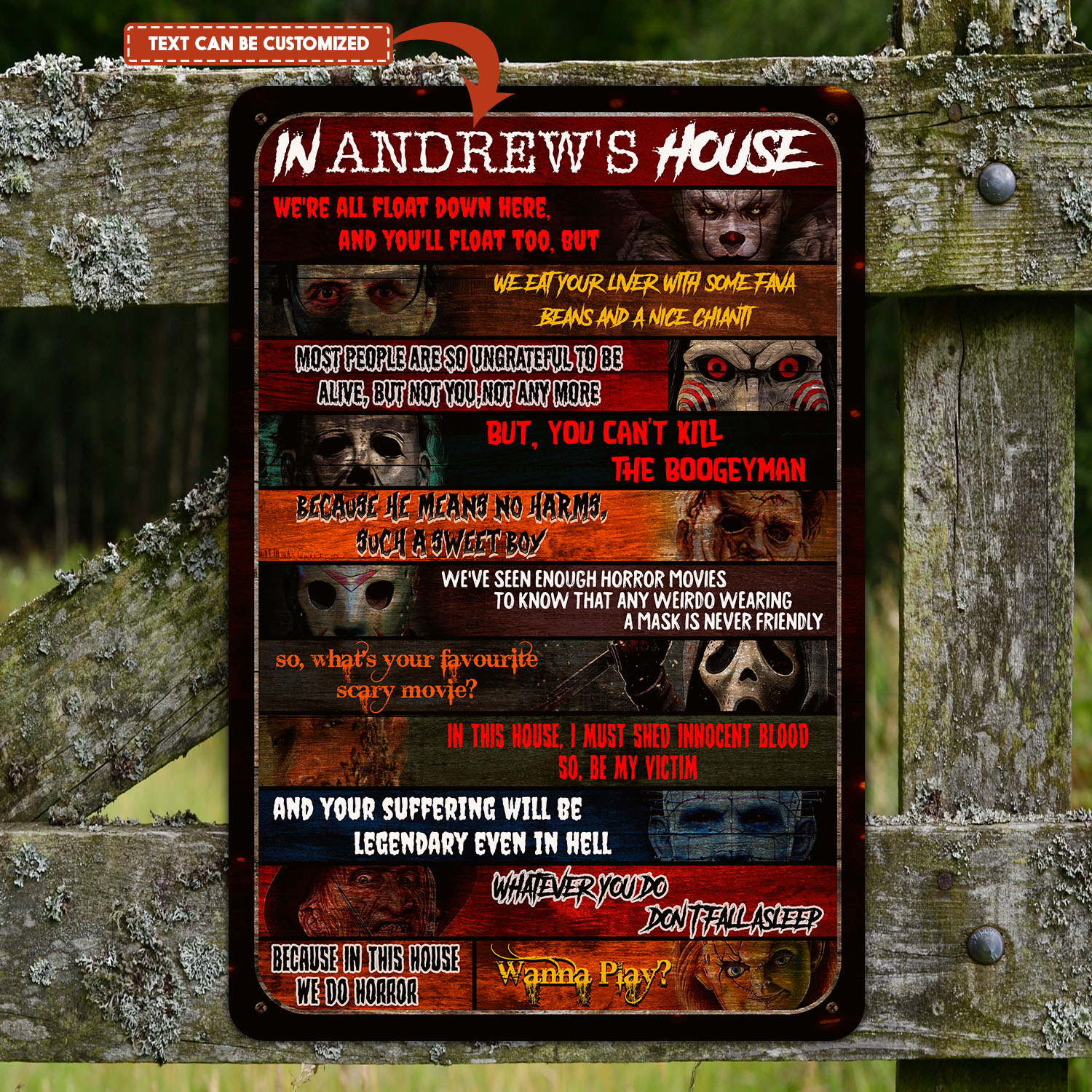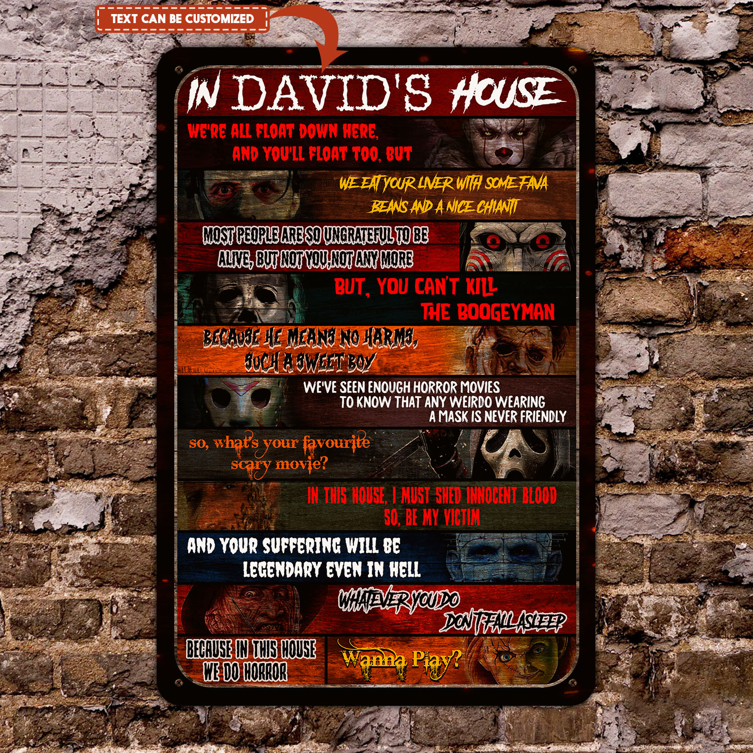 Let’s Shop Personalized Name In This House Horror Movies Characters Decorative Metal Sign – Indoor Outdoor Decor Farmhouse!