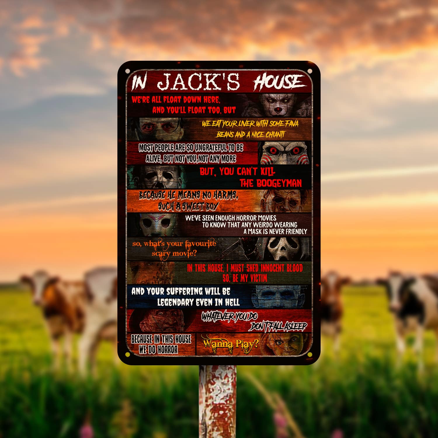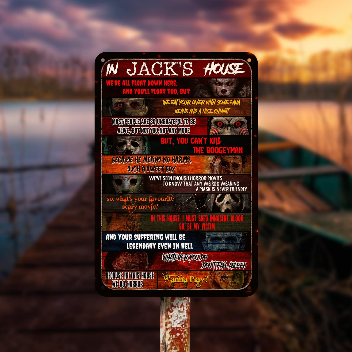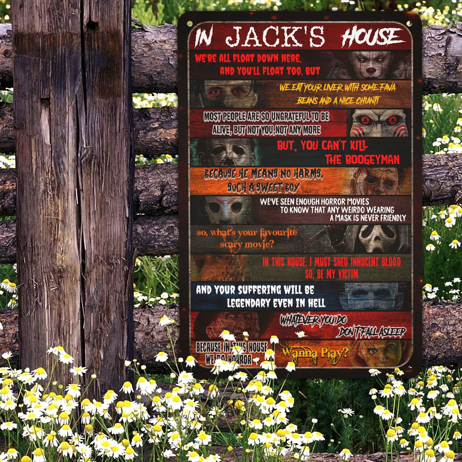 Are you spending too much time to find creative merchandise for you or suitable & special gifts for your mommy, your daddy, your son, your daughter, your children, your friends or someone you love? The struggle is over because we have various In This House Horror Movies Characters Art, Horror Movie Characters Sign, Horror Movie Characters, Horror Movie Characters Shirt, Horror Movie Characters Poster, Horror Film Characters, Michael Myers Sign, Michael Myers Metal Sign, Jason Voorhees Metal Sign, Friday the 13th Metal Sign, Halloween Metal Sign for Wall which will make perfect presents for your beloveds. In order to make your present stand out, we have created lots of unique and awesome customized photo gifts & personalized designs.