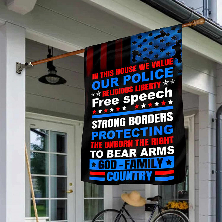 Let’s Shop In This House We Value Our Police Religious Liberty Free Speech Garden Flag – Patriotic Conservative House Flag!