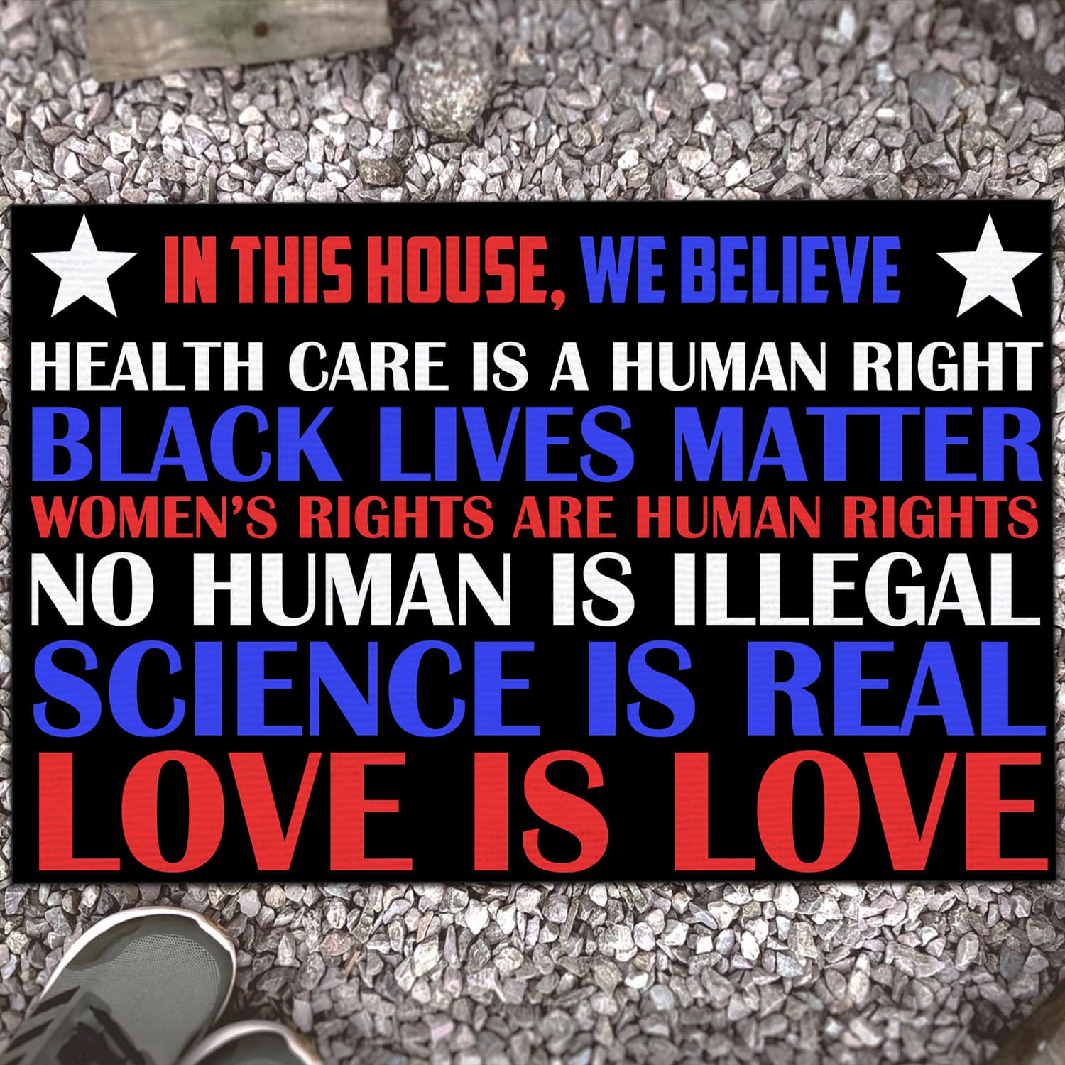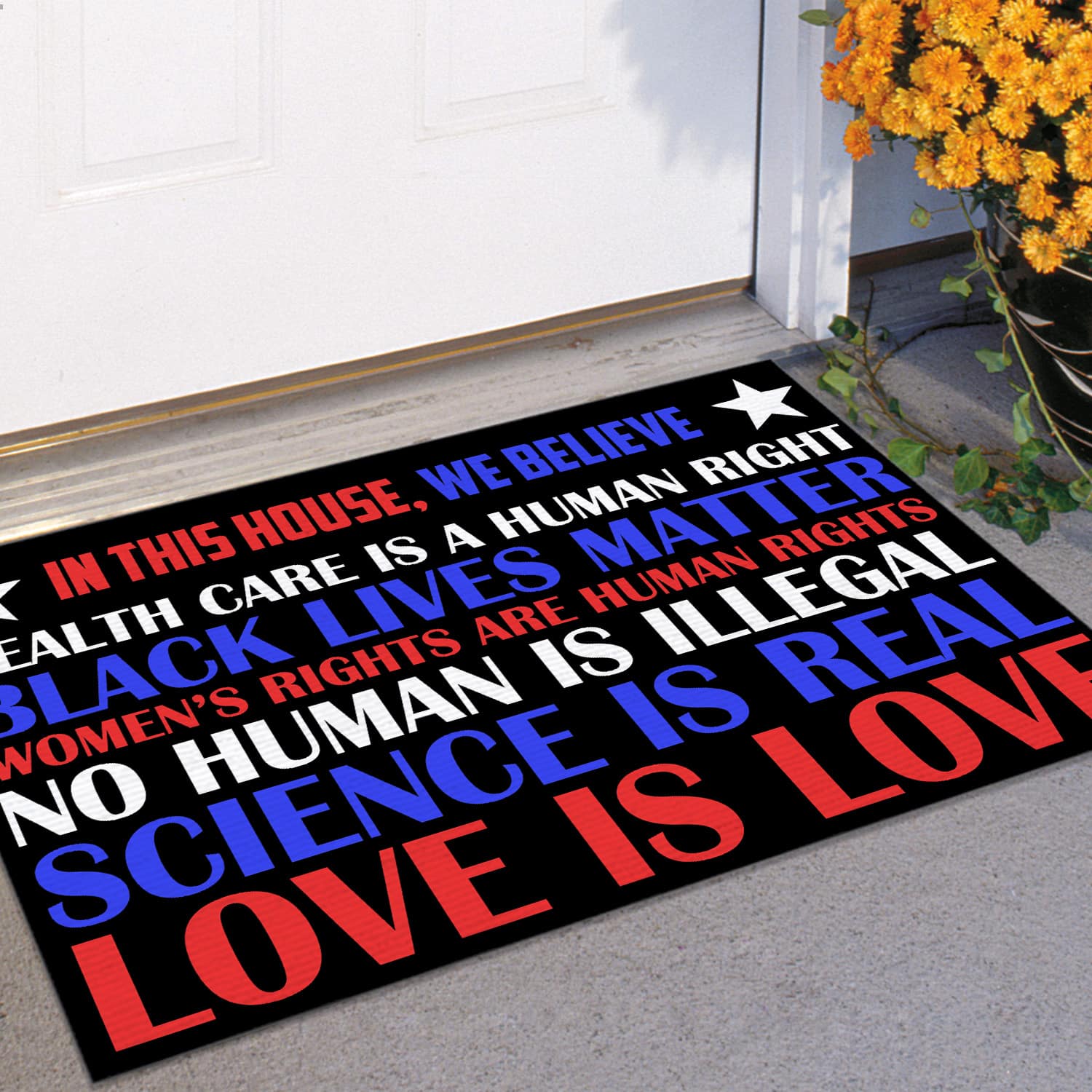Are you spending too much time to find creative merchandise for you or suitable & special gifts for your mommy, your daddy, your son, your daughter, your children, your friends or someone you love? The struggle is over because we have various Equality Doormat, Black Live Matter Doormat, Health Care Is a Human Rights Flag, Women Equality Doormat, Equal Rights Doormat, Social Doormat, All Lives Matter Doormat, in This House We Believe Doormat, Health Care Is a Human Rights Doormat, Women’s Rights Are Human Rights Doormat, No Human Is Illegal Doormat, Science Is Real Doormat, Love Is Love Doormat, Black Love Science Doormat which will make perfect presents for your beloveds. In order to make your present stand out, we have created lots of unique and awesome customized photo gifts & personalized designs.