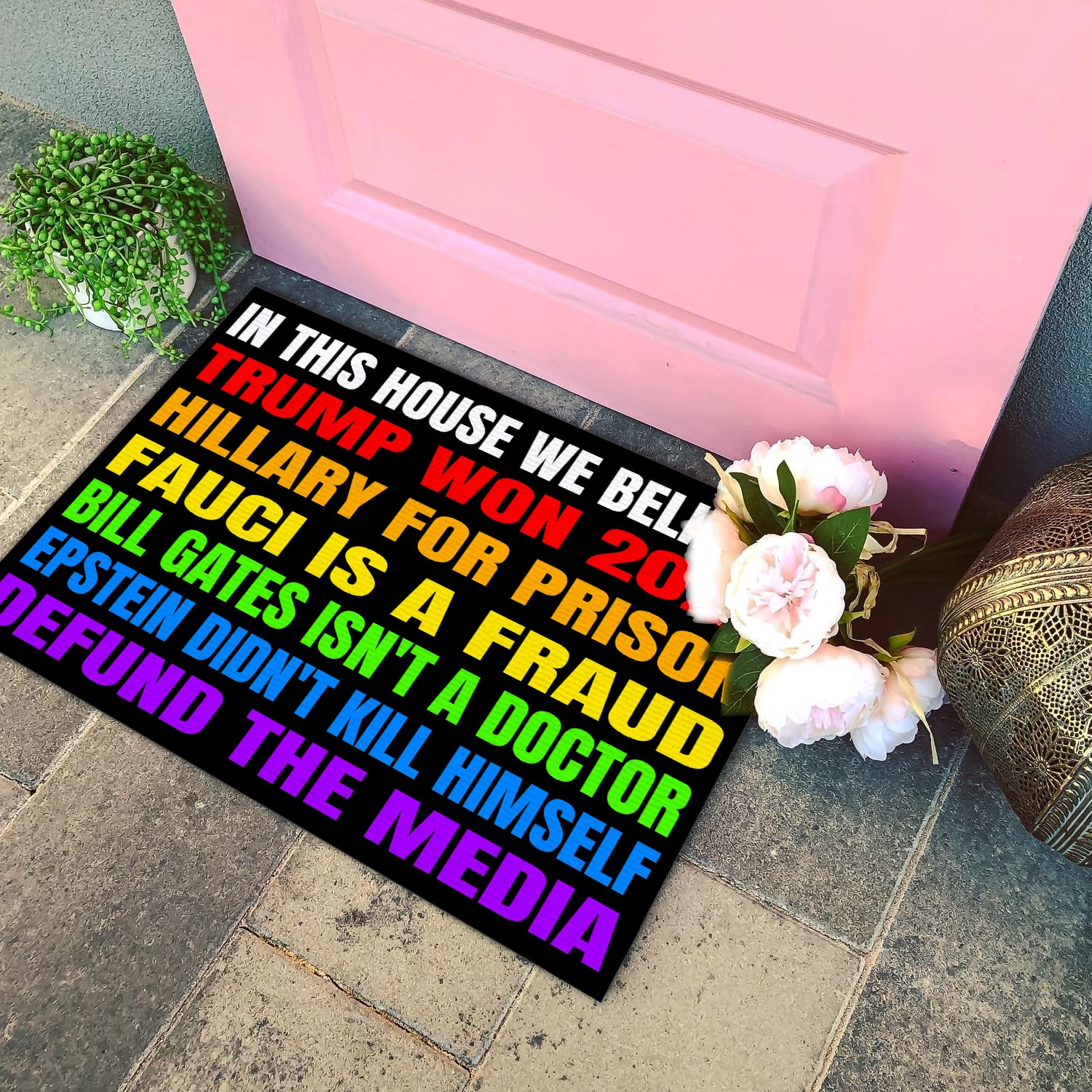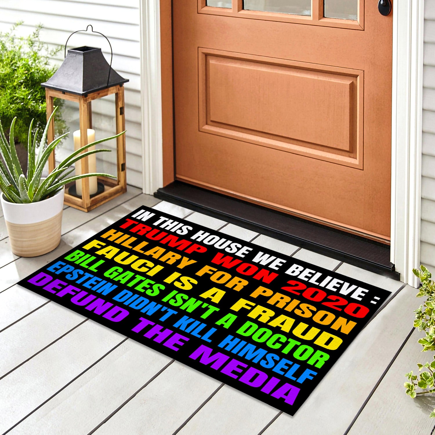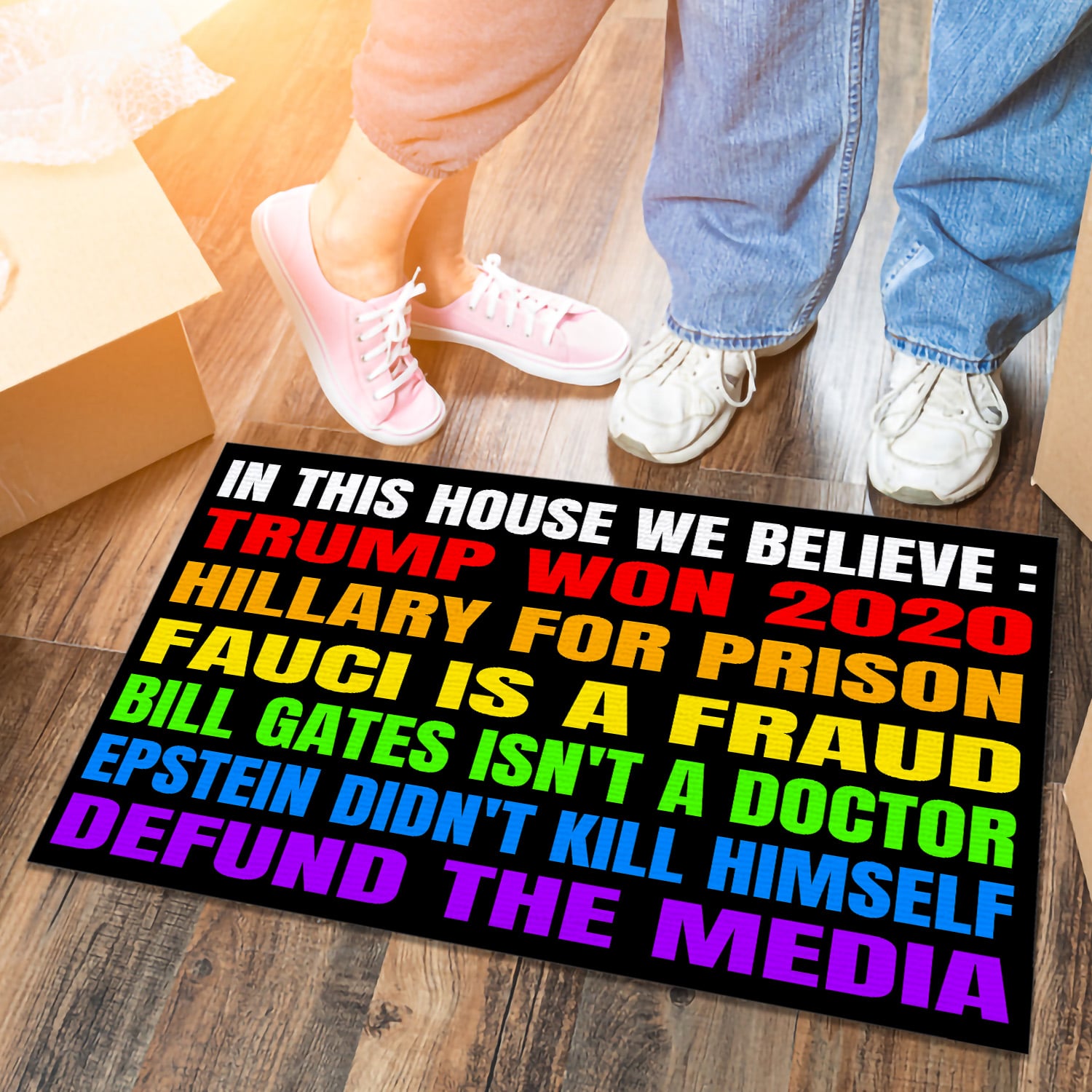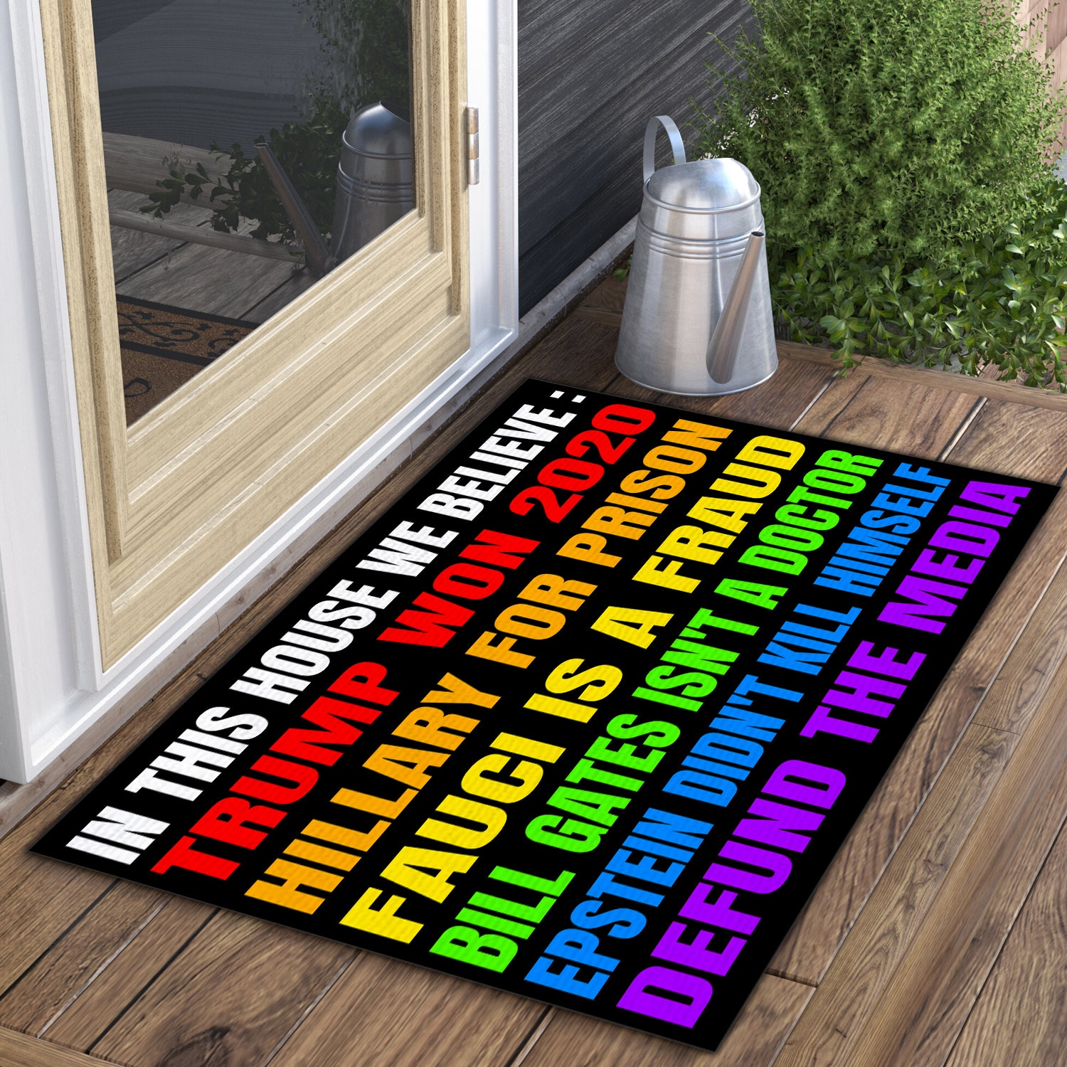Let’s Shop In This House We Believe Trump Won 2020 Hillary for Prison Fauci Is a Fraud Indoor Outdoor Mat!
