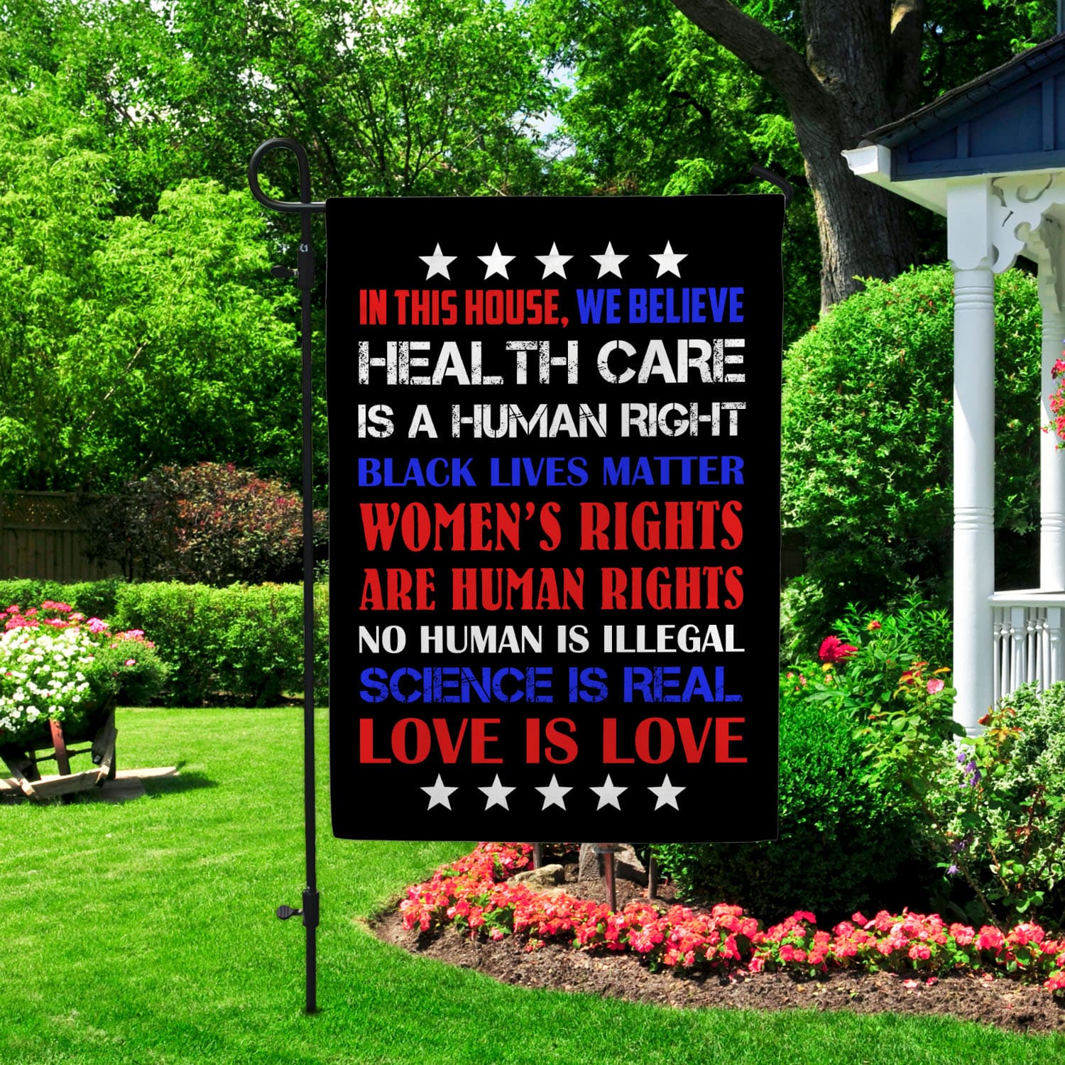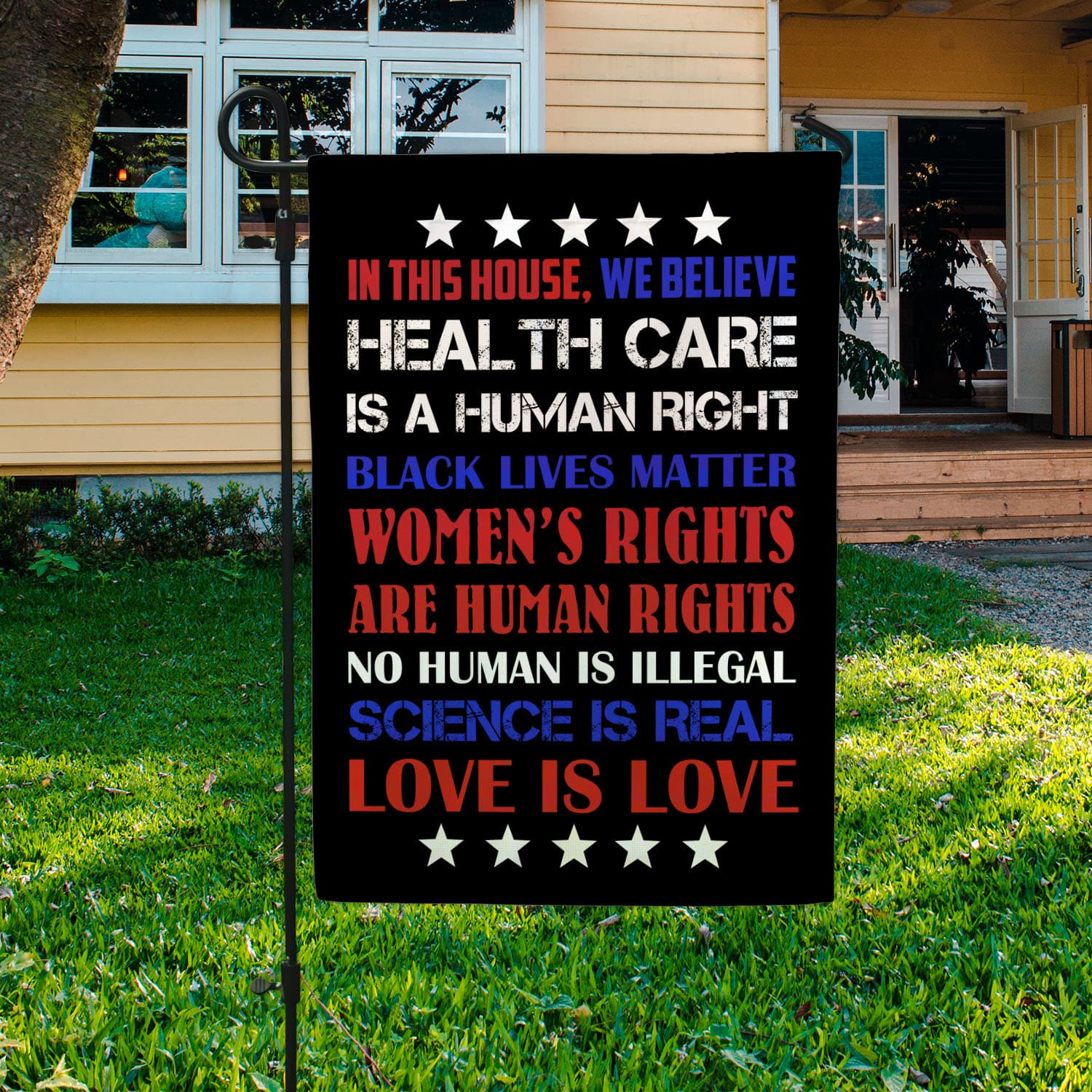 Let’s Shop In This House We Believe Health Care Is a Human Rights Decorative Garden Flag – Indoor Outdoor Flag – House Flag!