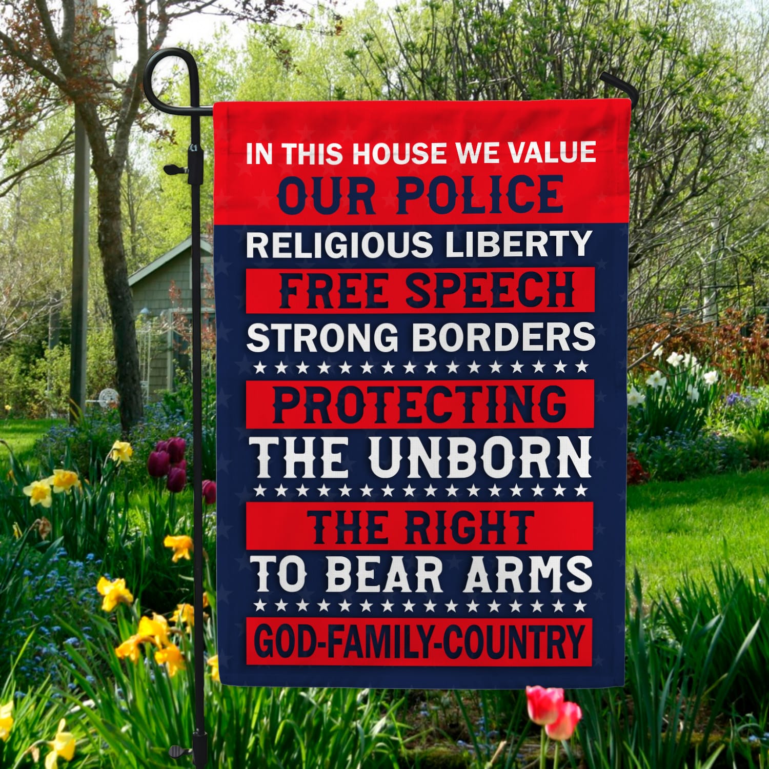 Let’s Shop In This House We Value Our Police Religious Liberty Free Speech Decorative Garden Flag – House Flag!