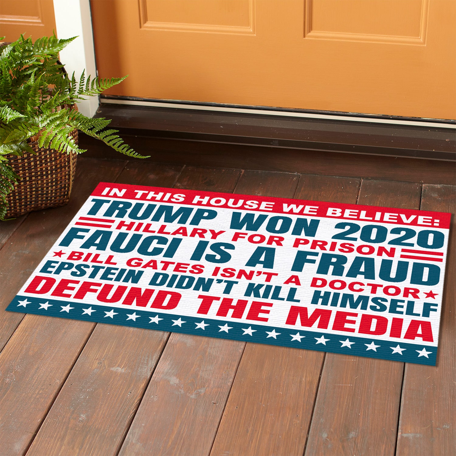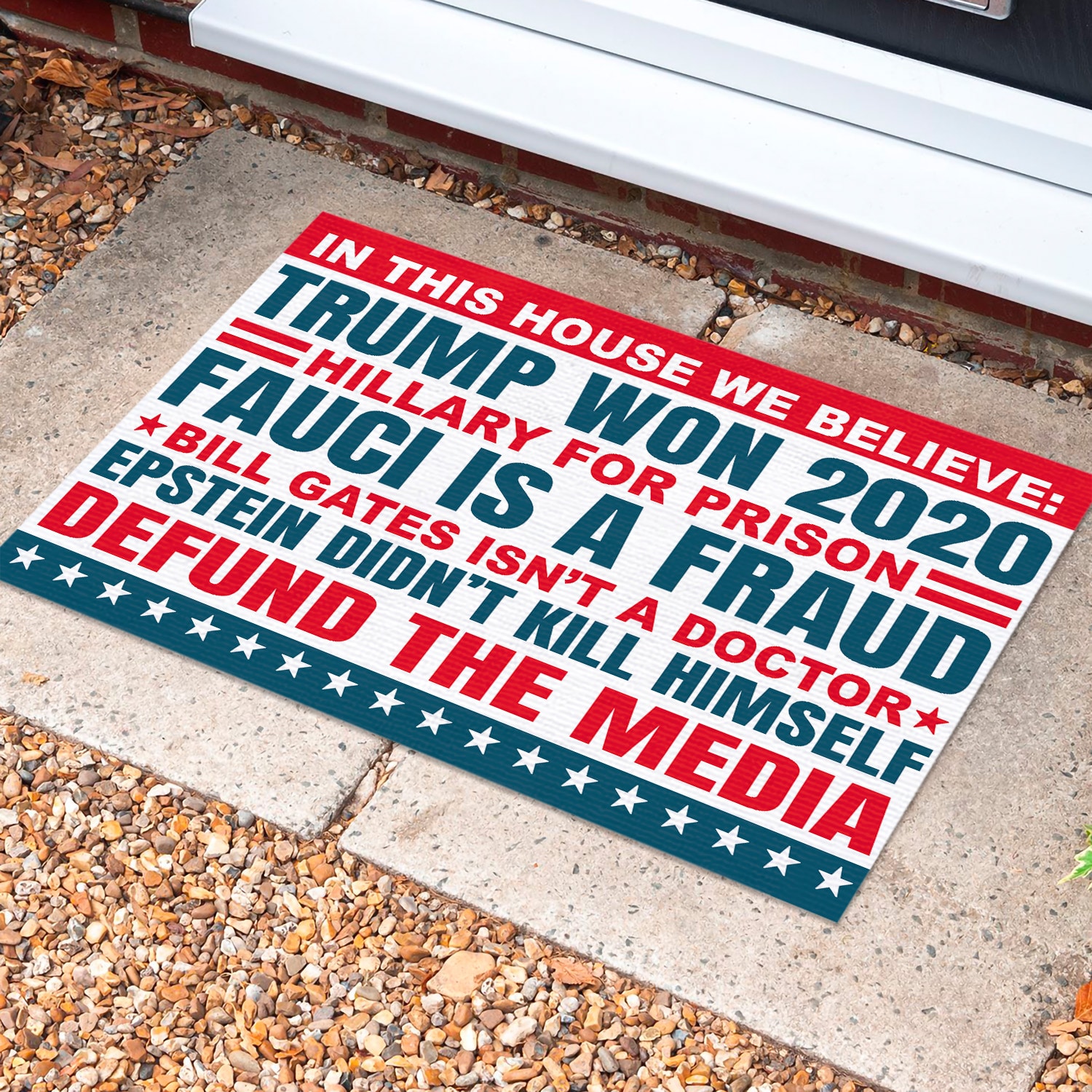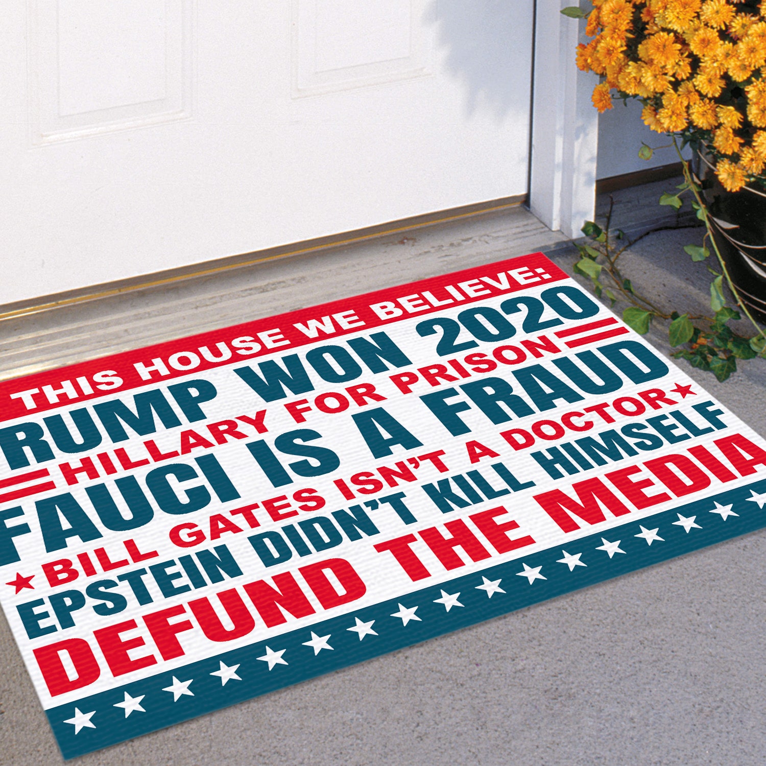 Are you spending too much time to find creative merchandise for you or suitable & special gifts for your mommy, your daddy, your son, your daughter, your children, your friends or someone you love? The struggle is over because we have various In This House We Believe Trump Doormat, In This House We Believe Doormat, Hillary For Prison Doormat, Bill Gates Isn’t A Doctor Doormat, Fauci Is A Fraud Doormat, In This House We Believe Trump Flag, In This House We Believe Trump Won Flag, In This House We Believe Trump Won 2020 Doormat, Support Trump Doormat which will make perfect presents for your beloveds. In order to make your present stand out, we have created lots of unique and awesome customized photo gifts & personalized designs.