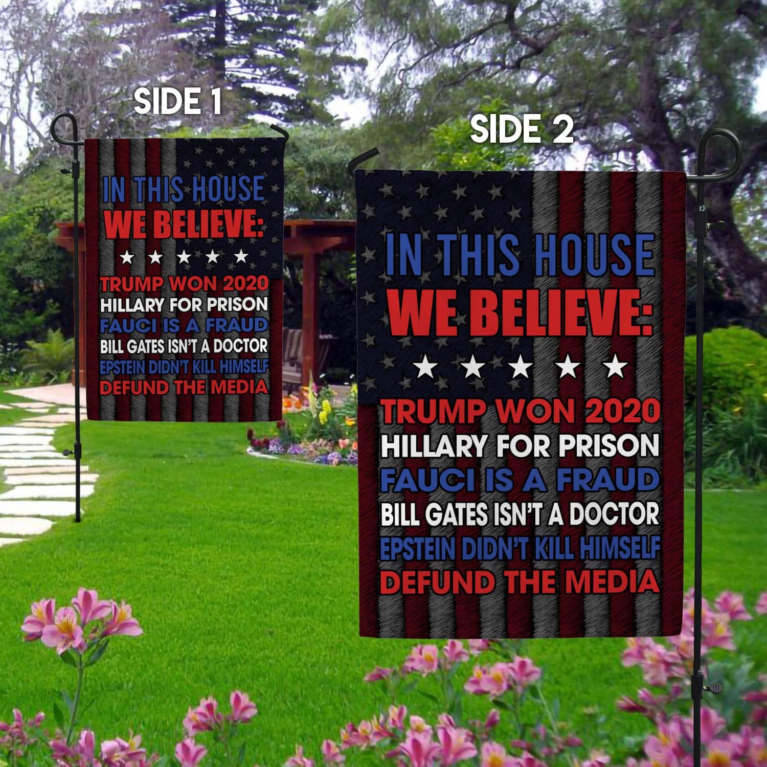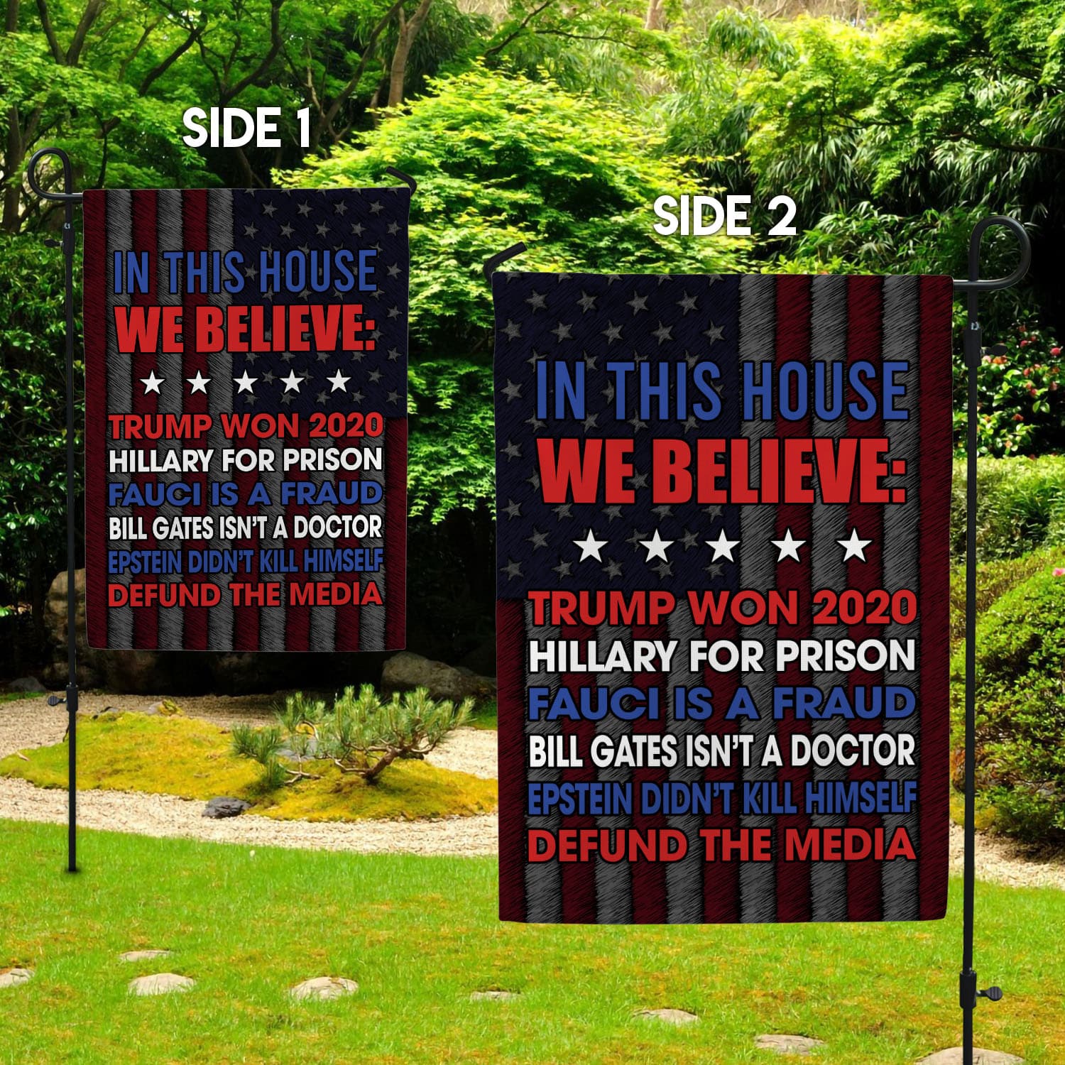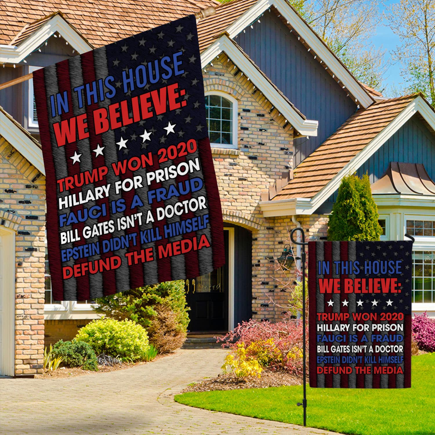 Let’s Shop In This House We Believe Trump Won 2020 Hillary For Prison Fauci Is A Fraud Outdoor Garden Flag – House Flag!
