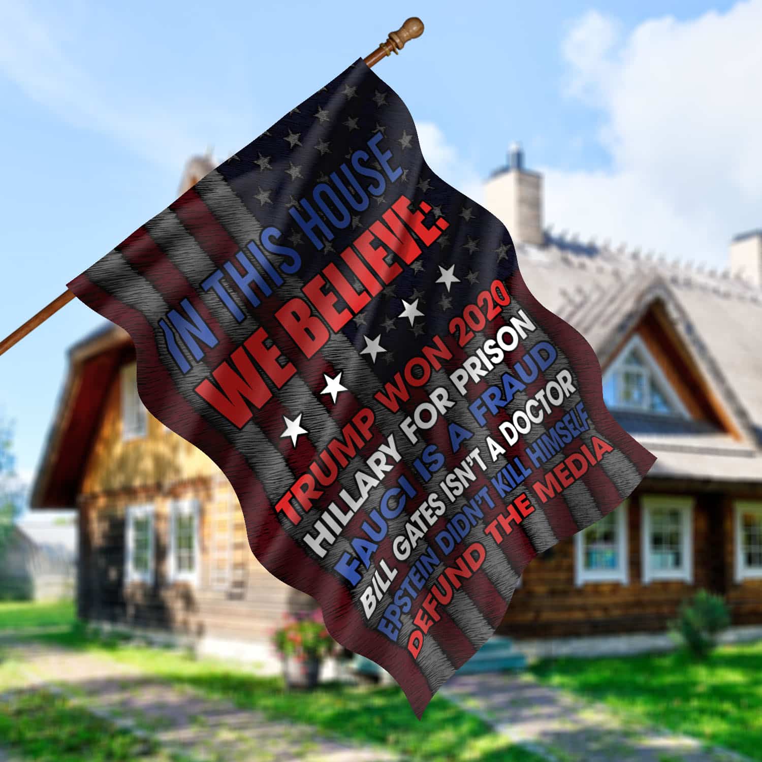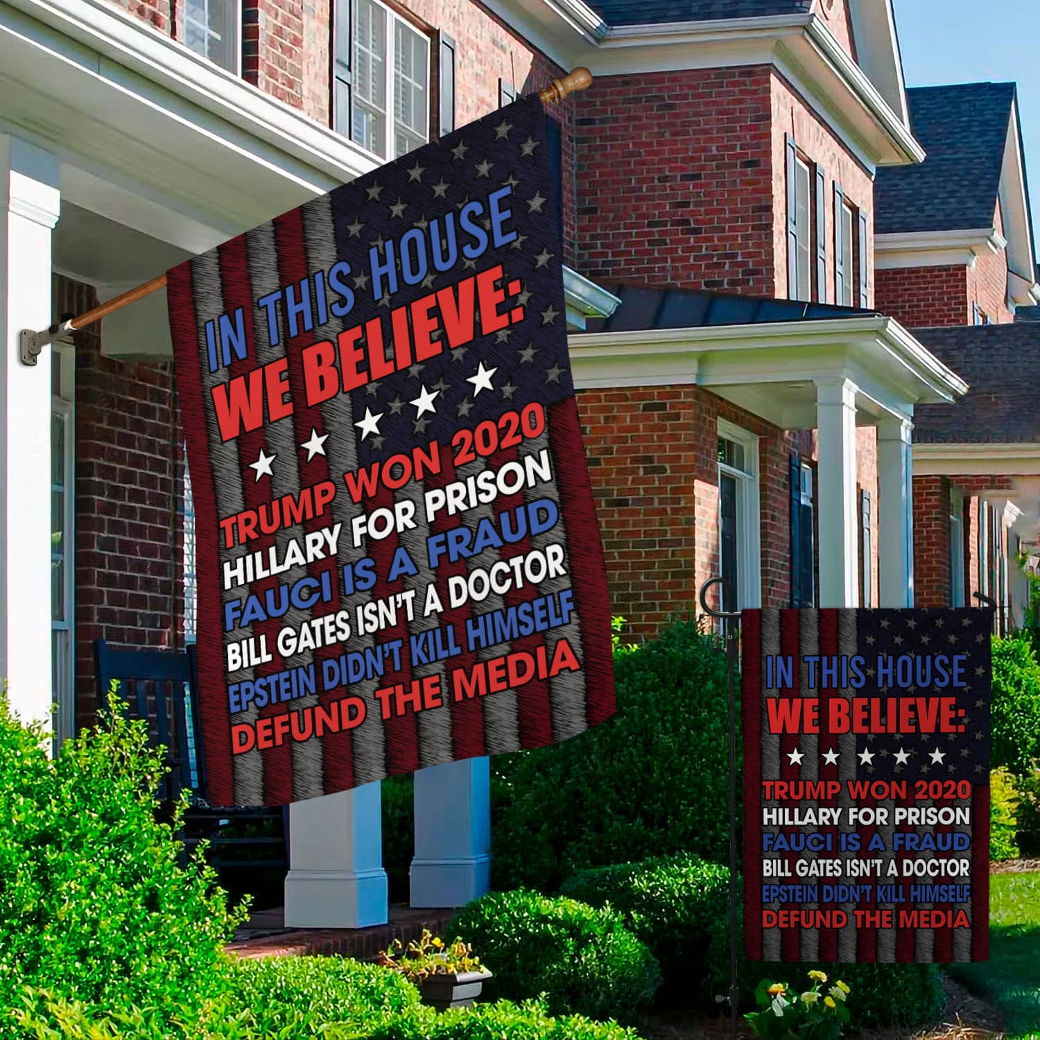Are you spending too much time to find creative merchandise for you or suitable & special gifts for your mommy, your daddy, your son, your daughter, your children, your friends or someone you love? The struggle is over because we have various In This House We Believe Trump Flag, Fauci Is a Fraud Flag, Support Trump Flag, Donald Trump Banner, Hillary for Prison Flag, in This House We Believe Trump Won 2020 Flag, in This House We Believe Bill Gates Isn’t a Doctor Flag which will make perfect presents for your beloveds. In order to make your present stand out, we have created lots of unique and awesome customized photo gifts & personalized designs.