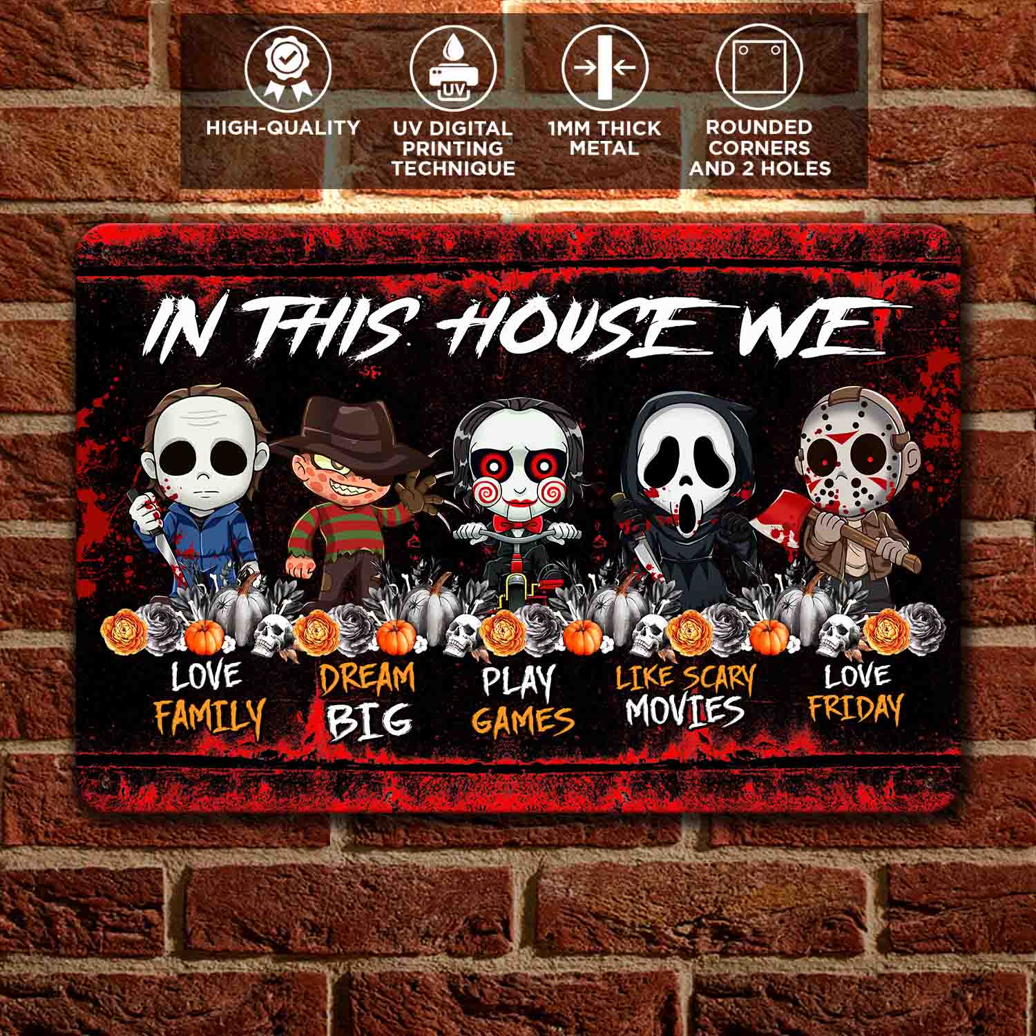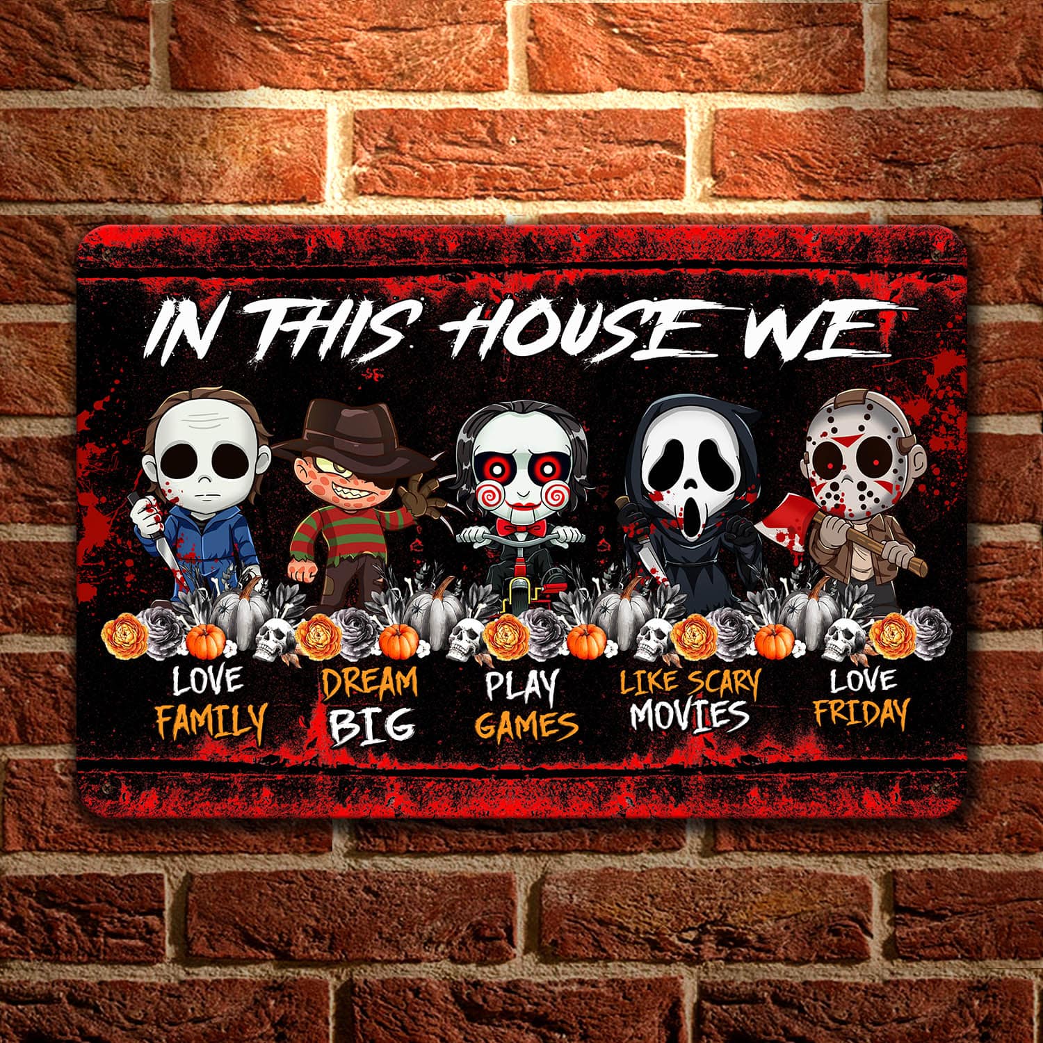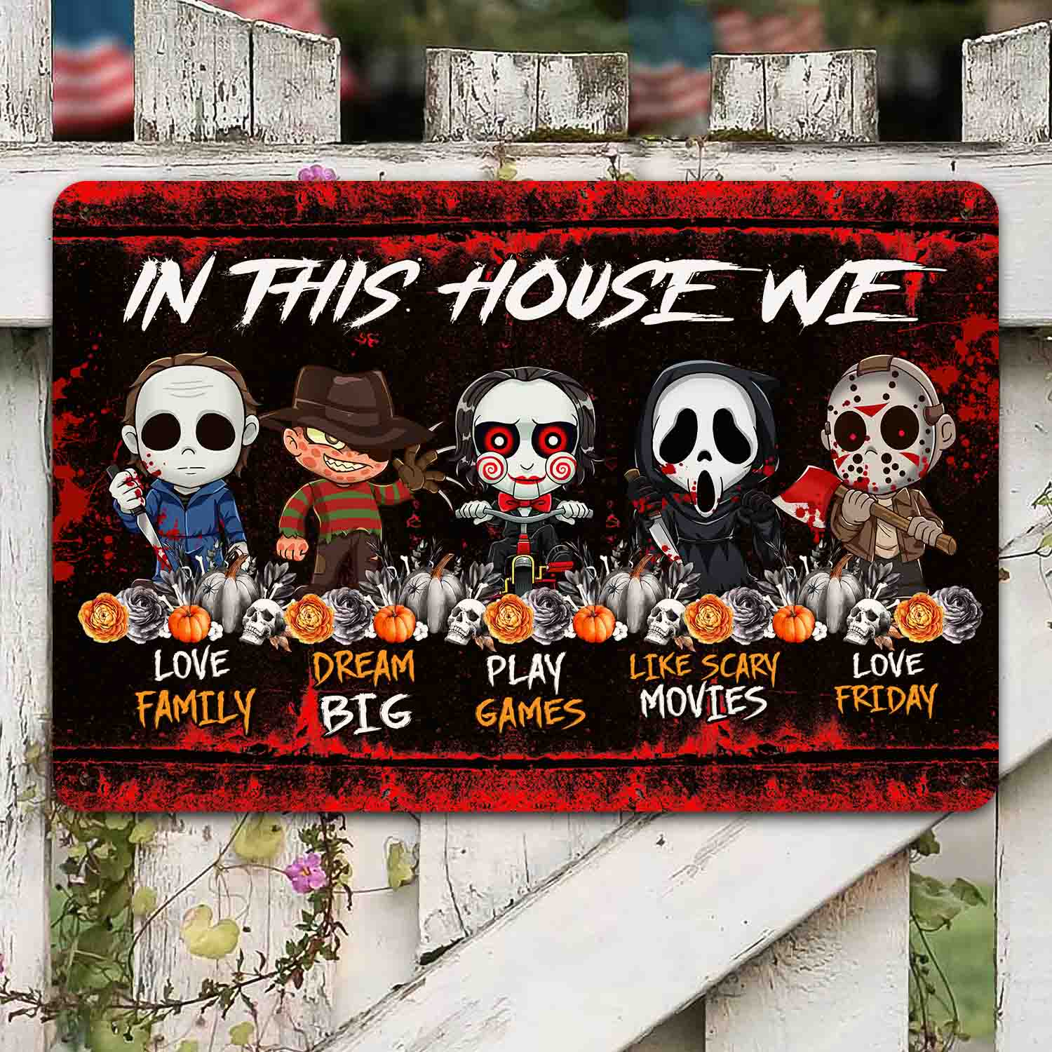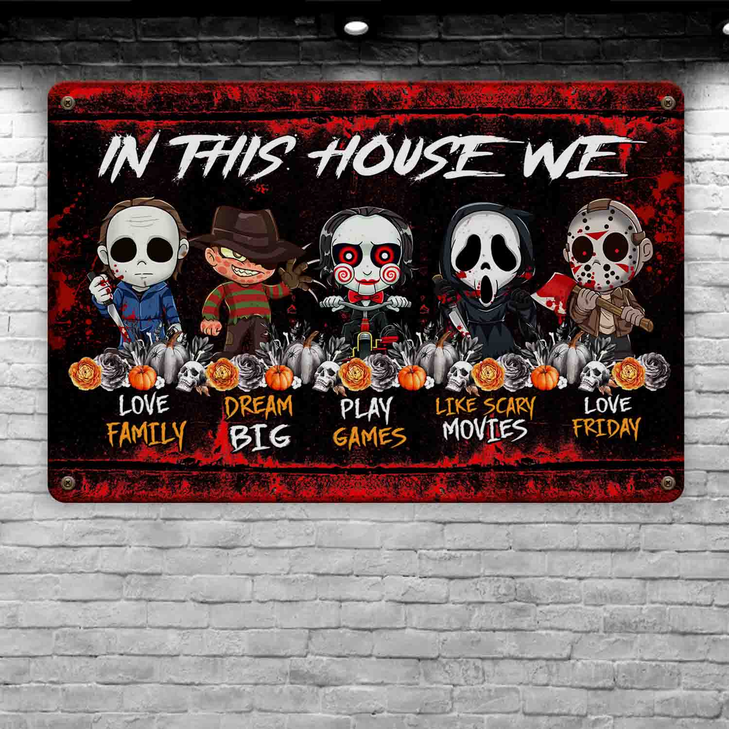 Let’s Shop In This House We Love Family Dream Big Like Scary Movies Horror Movie Characters Decorative Metal Sign!