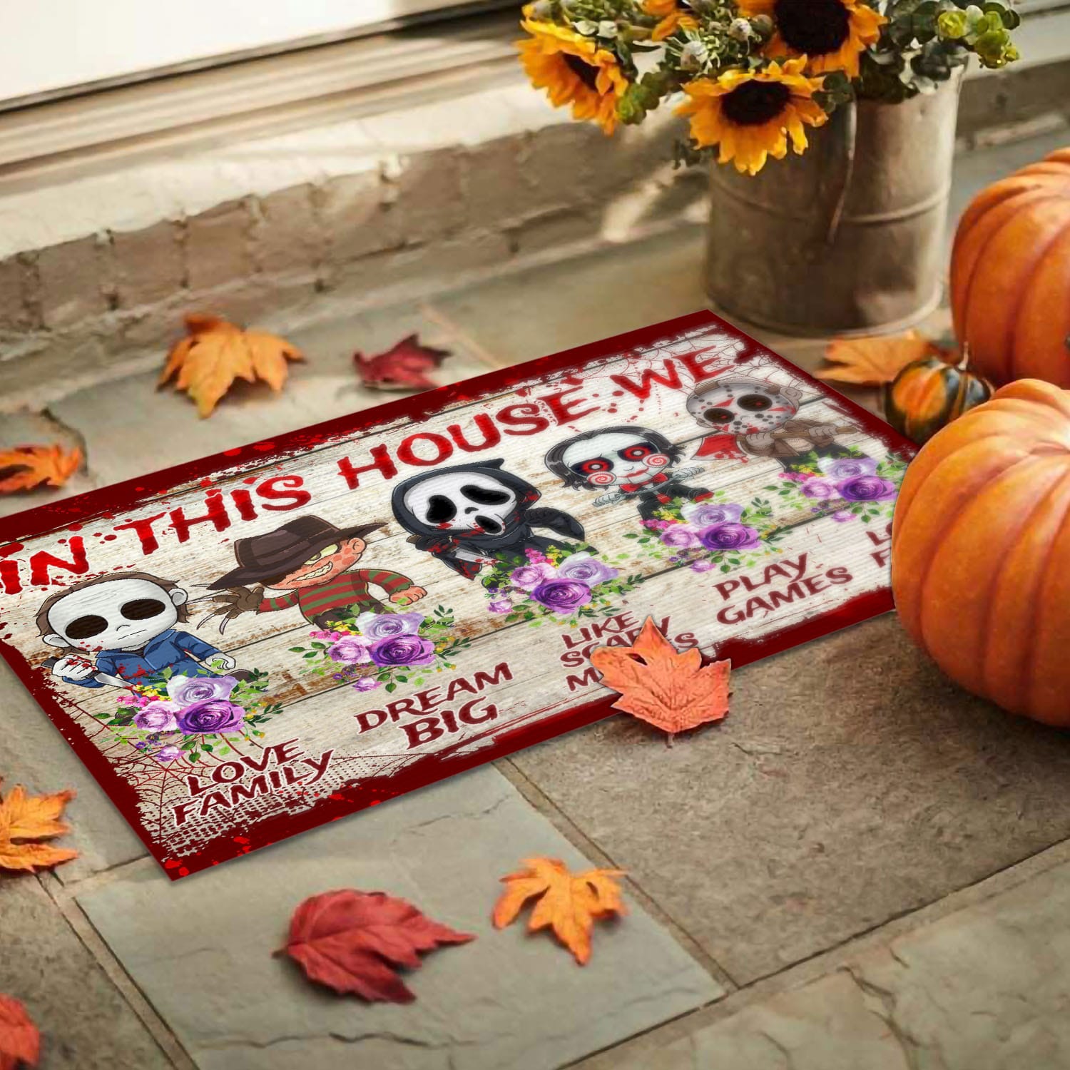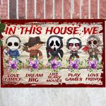 Let’s Shop In This House We Love Family Dream Big Like Scary Movies Horror Movie Halloween House Doormat – Outdoor Doormat!
